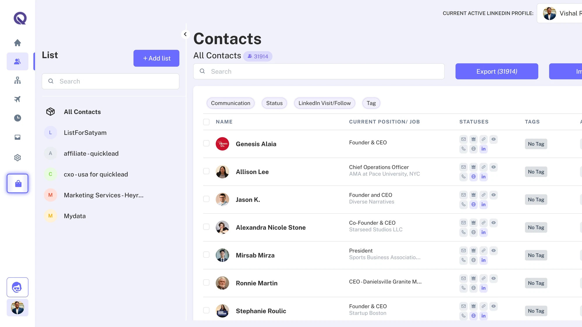 Quicklead is a powerful LinkedIn automation tool designed to streamline lead generation and network management. It offers advanced scraping capabilities to gather crucial data from LinkedIn Sales Navigator profiles, enabling businesses to extract customer information, find emails, and manage marketing campaigns efficiently.