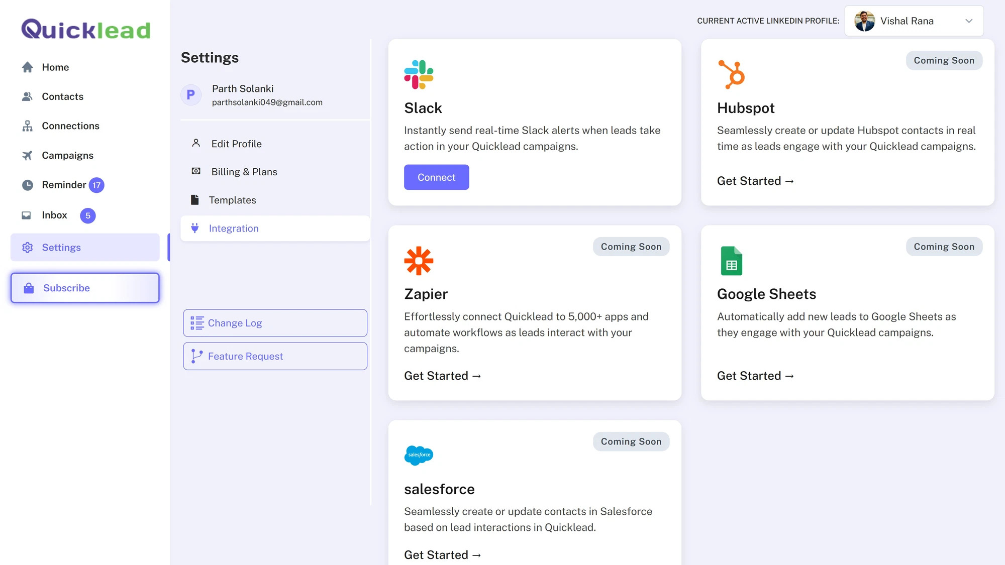 Quicklead’s drip campaign feature is designed to automate and personalize your LinkedIn and email outreach, ensuring consistent and timely follow-ups with your prospects.