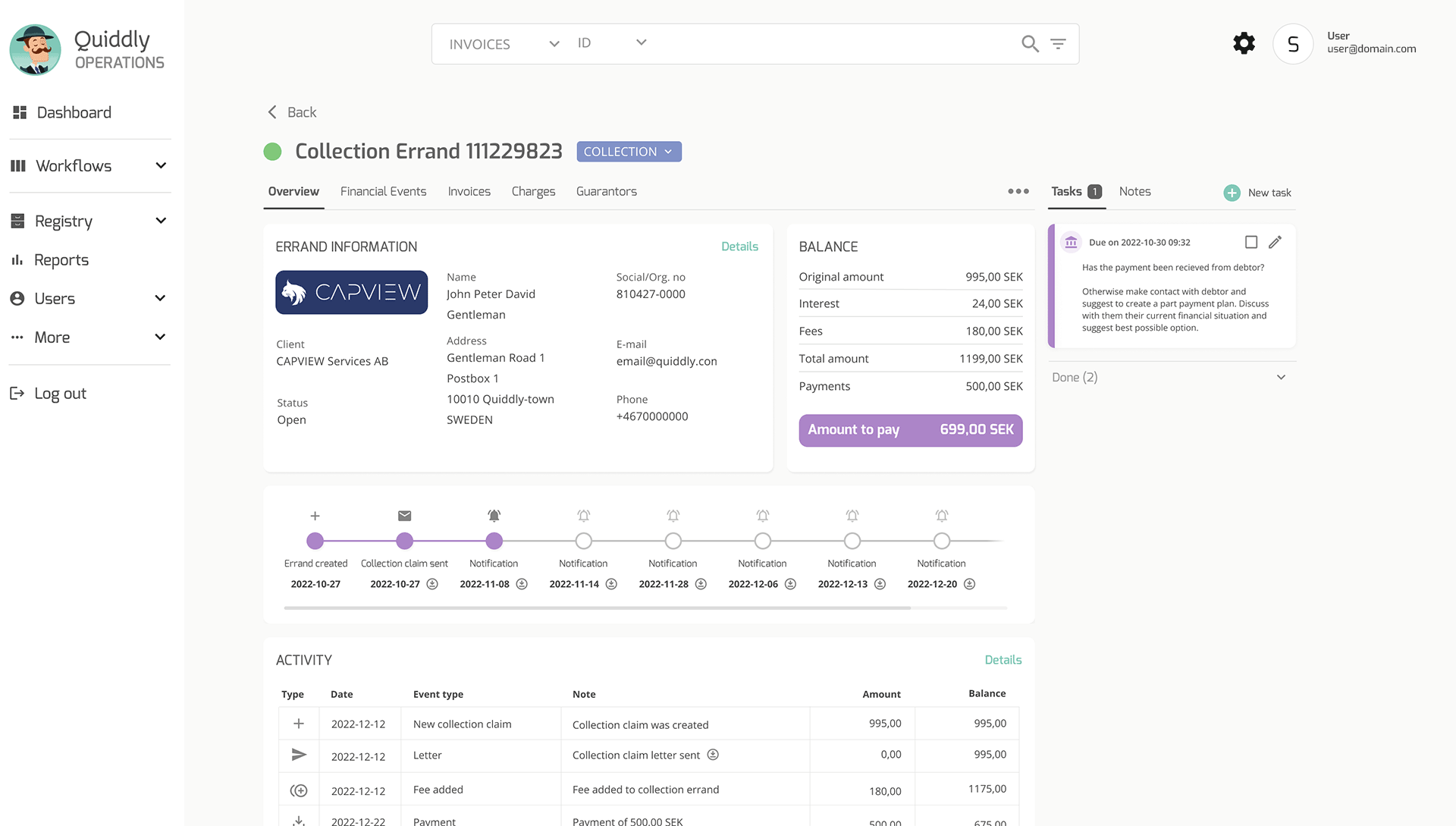 * systematic workflows to recover past due invoices