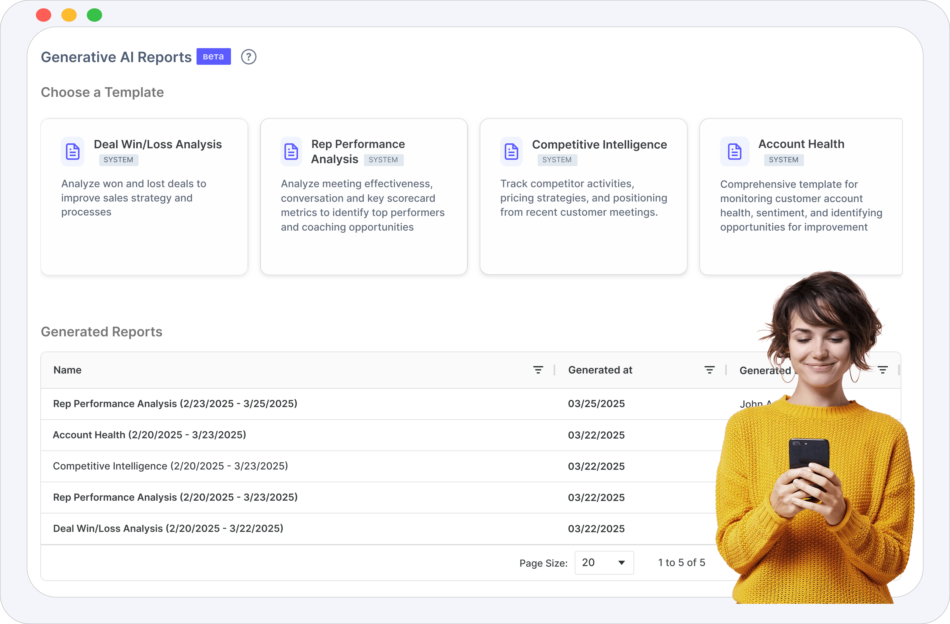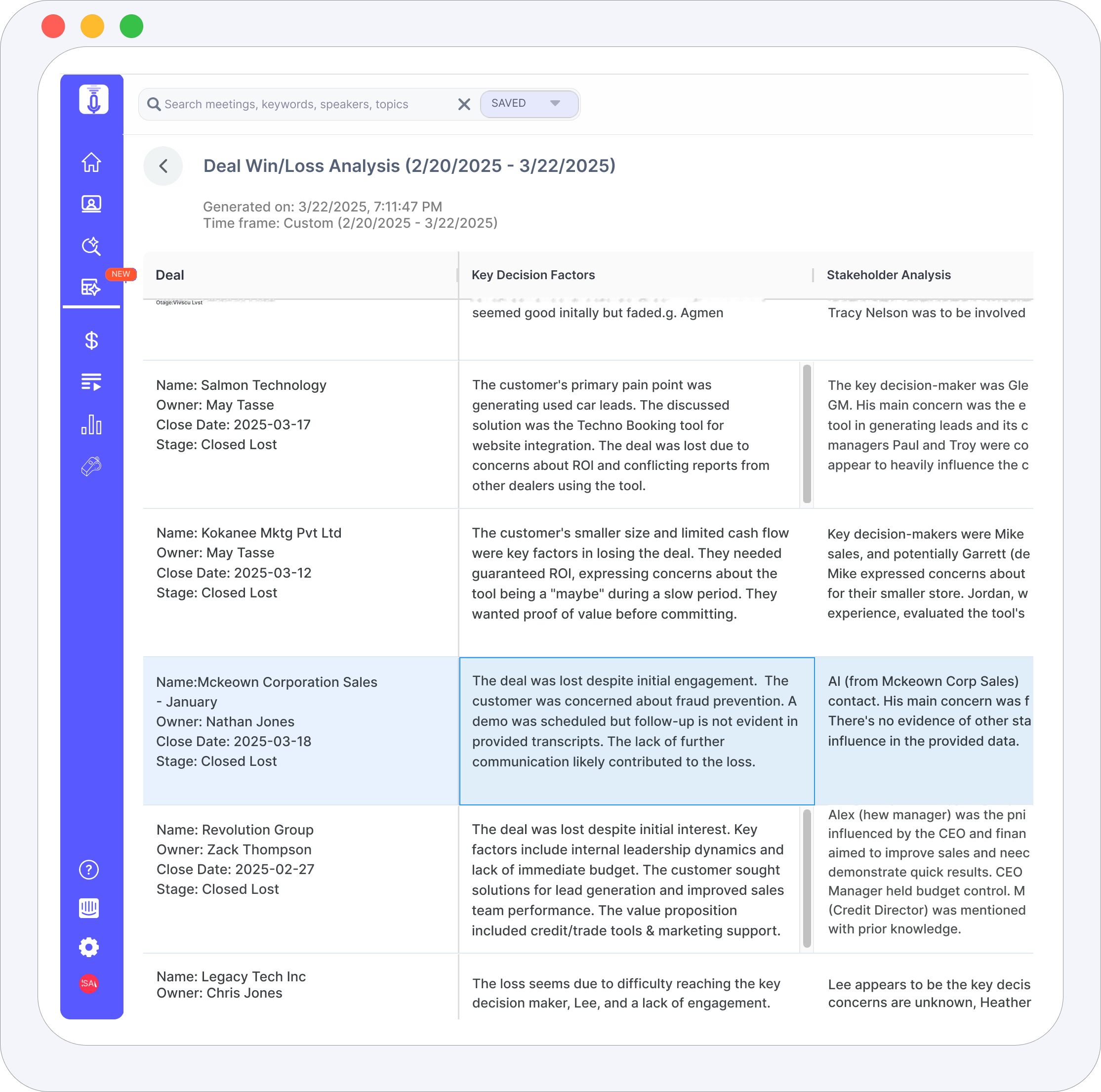 Rafiki helps in spotting deal risks, finding upside opportunities, and improving your sales conversations. Rafiki’s state-of-the-art AI engine records, transcribes, and analyzes all your sales conversations across communication channels including web conferencing applications, dialers, and emails and empowers you to close more deals faster.