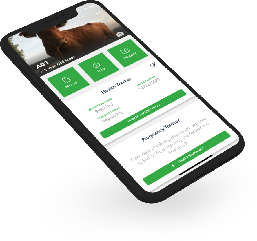 Track individual cattle by ear tag and other primary IDs. Log health records including vaccines, treatments, and vet visits. Store photos of each animal so you can pull up a picture and know exactly which cow you are looking at. Enter breeding dates and the app automatically calculates estimated calving dates so you know when to start watching. Record weights, sale info, and notes on each animal as you work them through the chute or out in the field.