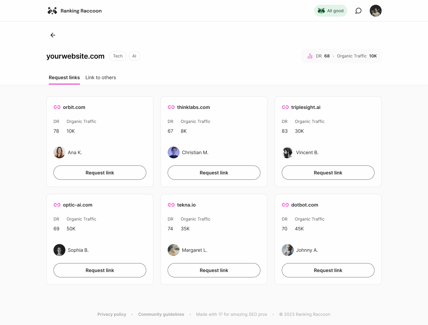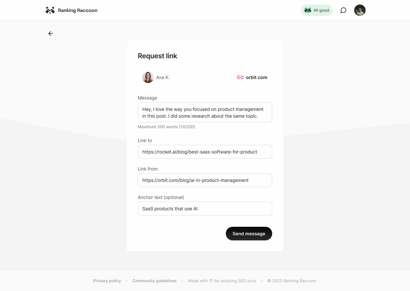 It is very easy to use, comfortable to start relationships with people and slowly build up our website backlink profile. It has been instrumental in taking the DA of my website from 8 to 28 in just 4 months. Review collected by and hosted on G2.com.