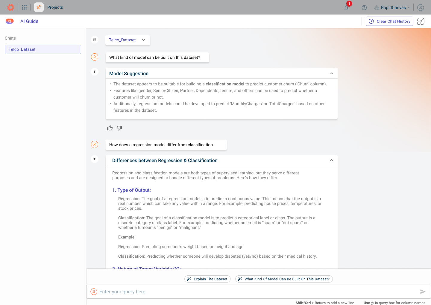 I have been setting up RapidCanvas for three to four months, and the experience has been great, with the project moving forward positively. The follow-up meetings have been good, indicating supportive engagement. The initial project is aimed at increasing sales output, and RapidCanvas is assisting us by providing a coach that helps our sales agents close more sales and schedule more appointments, which is beneficial in improving our sales performance. Another standout aspect is the platform's capability to allow the use of different types of AI and build various solutions within a single platform, which we find particularly promising and are keen to explore further. Review collected by and hosted on G2.com.