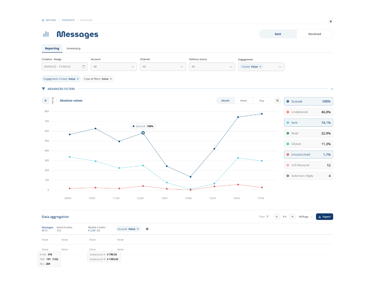 Integrated messaging platform providing user communication on all devices with Emails, SMS, Web Push, SMTP and more