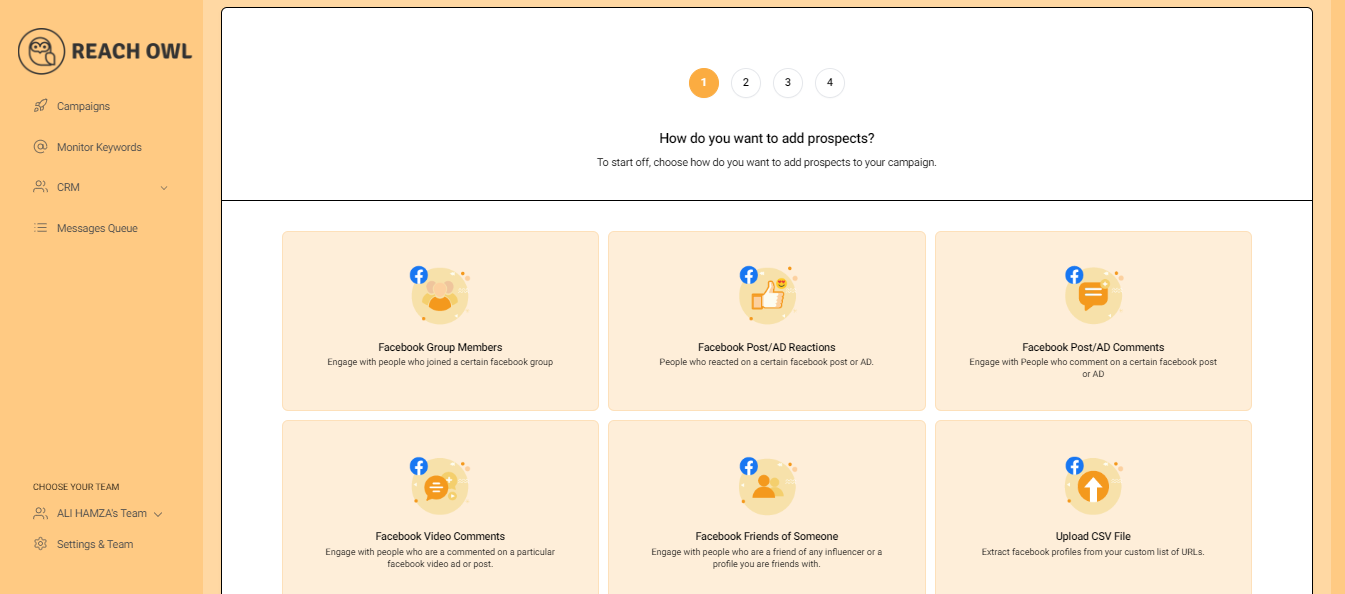 Unlock a world of possibilities with ReachOwl's advanced features. Seamlessly run DM campaigns on Facebook and Instagram with just a few clicks. Build your audience by targeting specific Facebook groups, friends of individuals, or even based on reactions and comments on Facebook posts. On Instagram, you can curate your audience from profile followers, followings, or interactions on posts. The possibilities are endless. 🔍📲