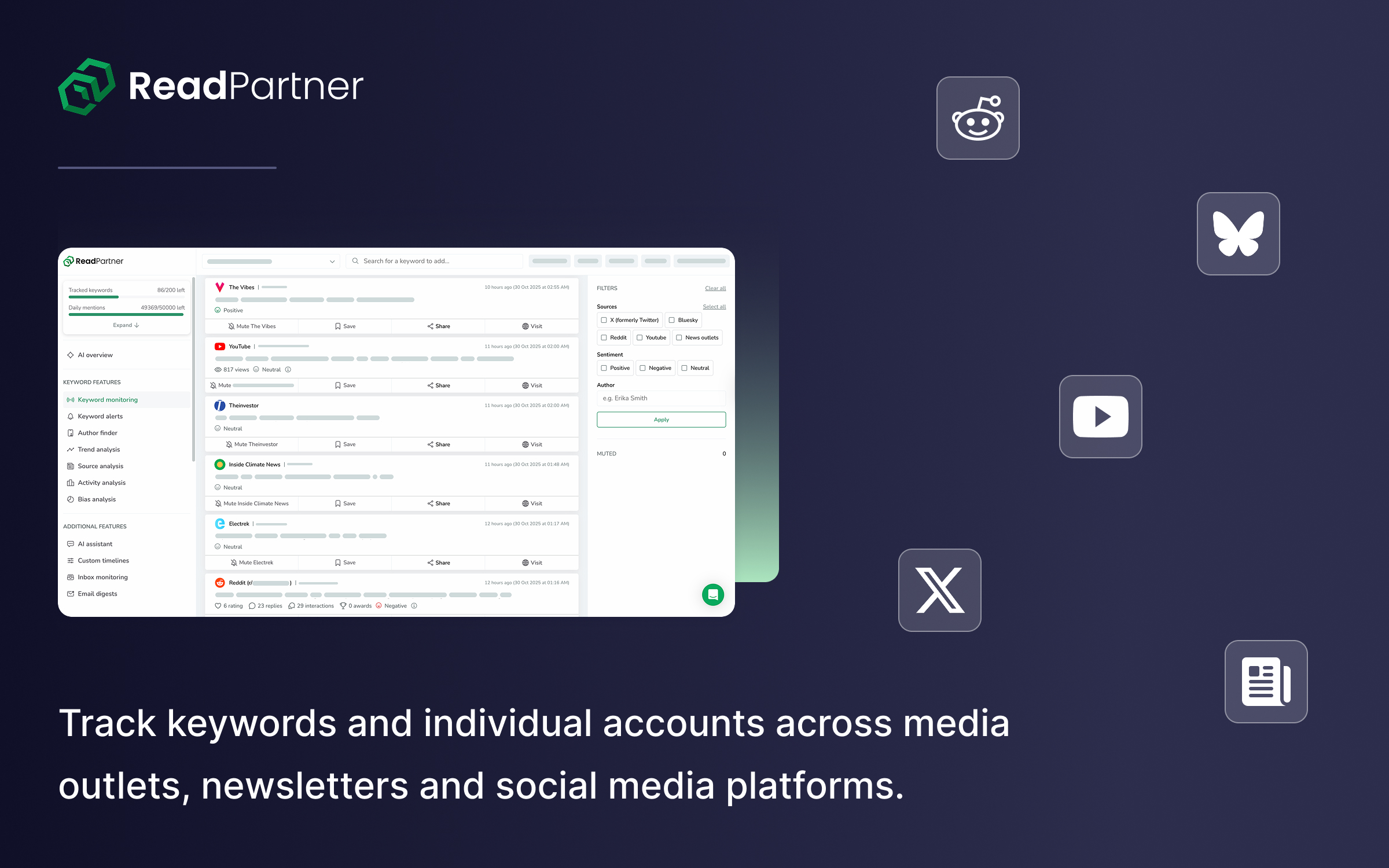 ReadPartner also includes media intelligence dashboards that allow users to track trends, analyze social media posts, and identify key topics of interest. This data-driven approach enhances the ability to understand audience sentiment and engagement, providing valuable insights that can inform strategic decisions. Furthermore, the integration of AI tools within the platform enhances internal reporting and data analysis, enabling organizations to derive deeper insights from their media monitoring efforts.