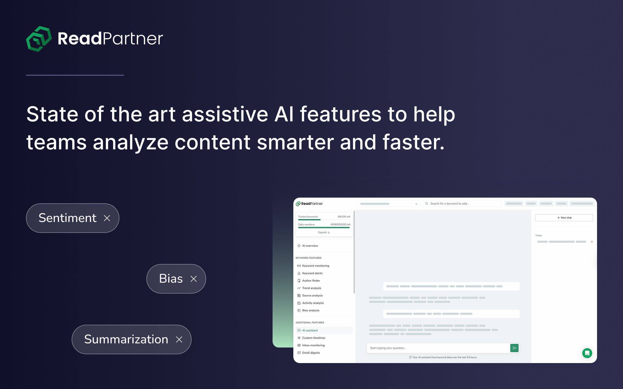 ReadPartner is a specialized media intelligence platform designed to assist professionals and organizations in navigating the complexities of today’s fast-paced media environment. By delivering tailored news monitoring, cross-department briefings, and advanced media intelligence tools, ReadPartner empowers users to make informed decisions and maintain cohesive communication across various sectors.