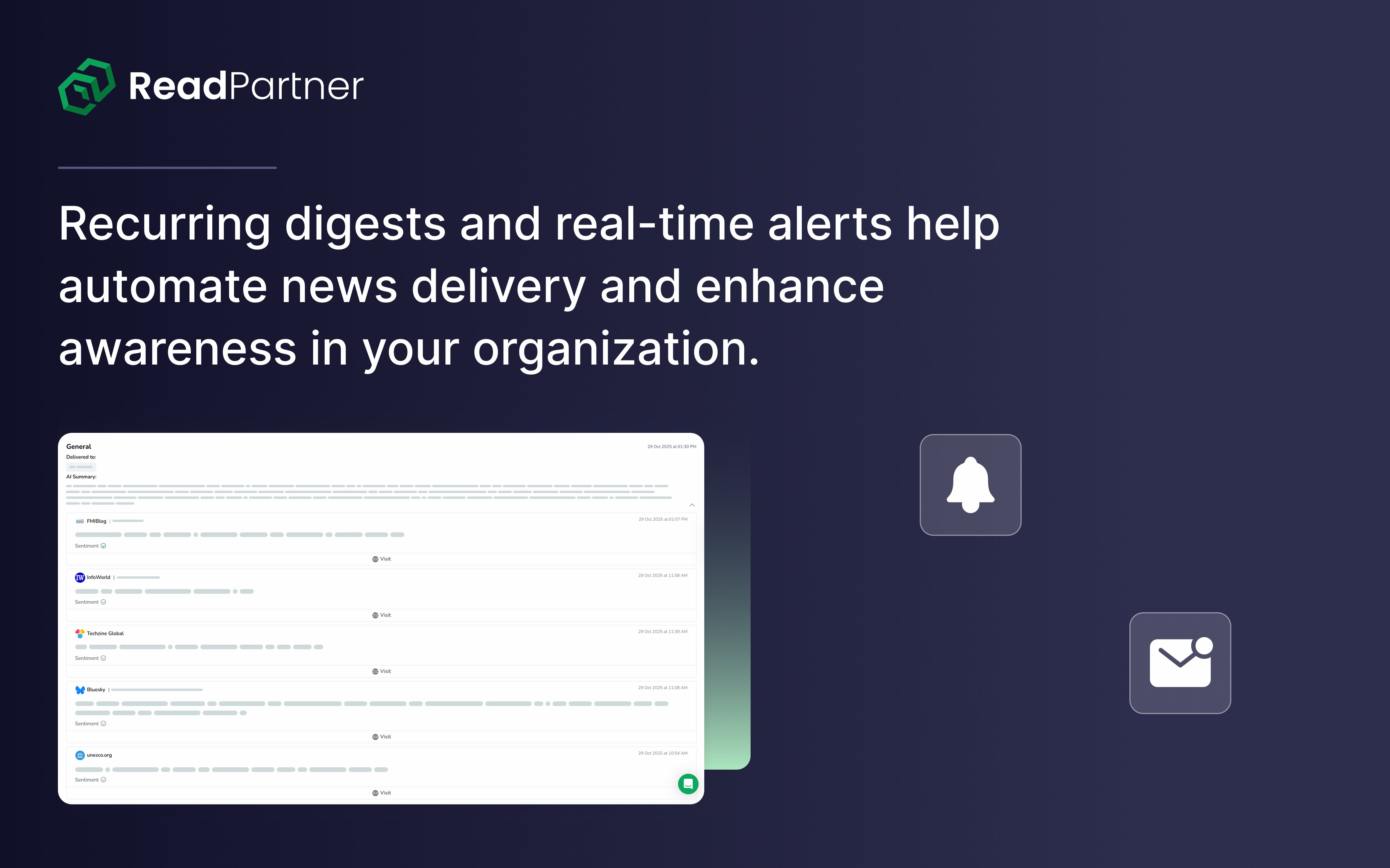 One of the key features of ReadPartner is its real-time news monitoring capability, which aggregates information from both global and local sources. This feature enables users to stay informed about relevant developments in their industry, ensuring that they can respond swiftly to emerging issues. Additionally, the platform offers custom email briefings tailored to the specific needs of teams, departments, and leadership, facilitating effective communication and ensuring that critical information reaches the right individuals promptly.