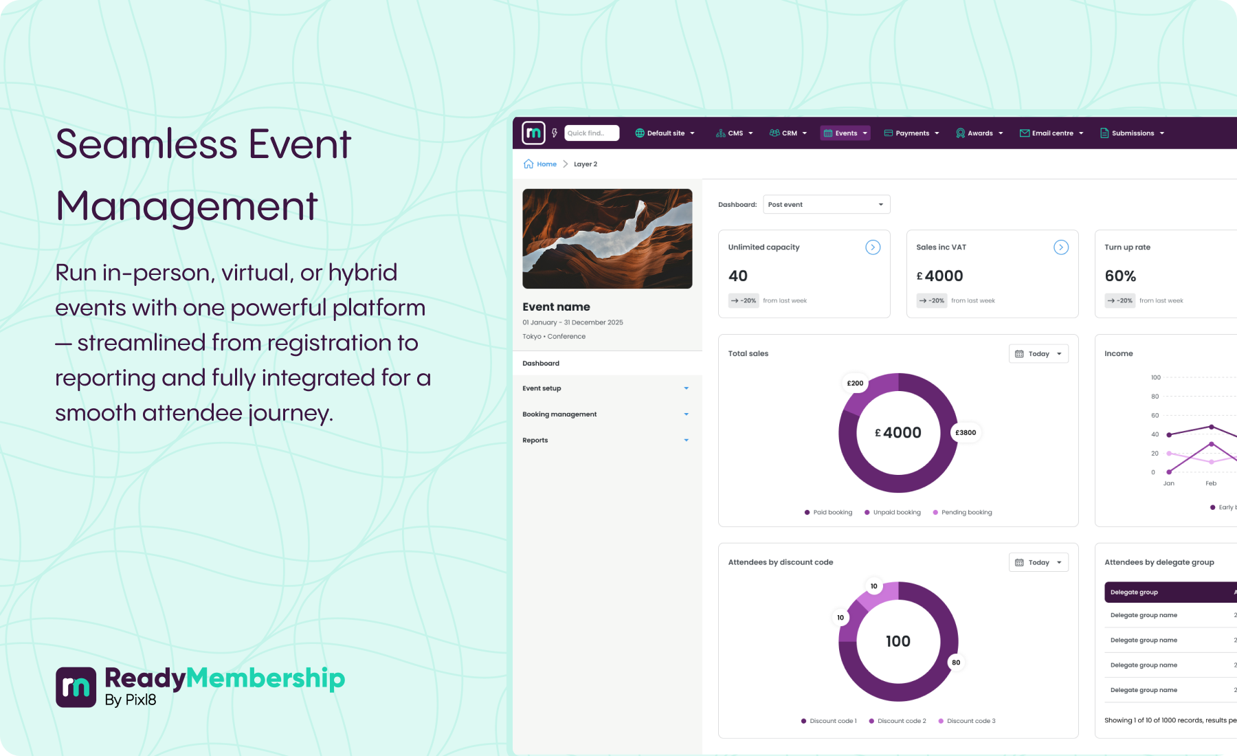 Great event software (Event-Folio) and great website (CMS). Also, it provides a comprehensive solution. Review collected by and hosted on G2.com.
