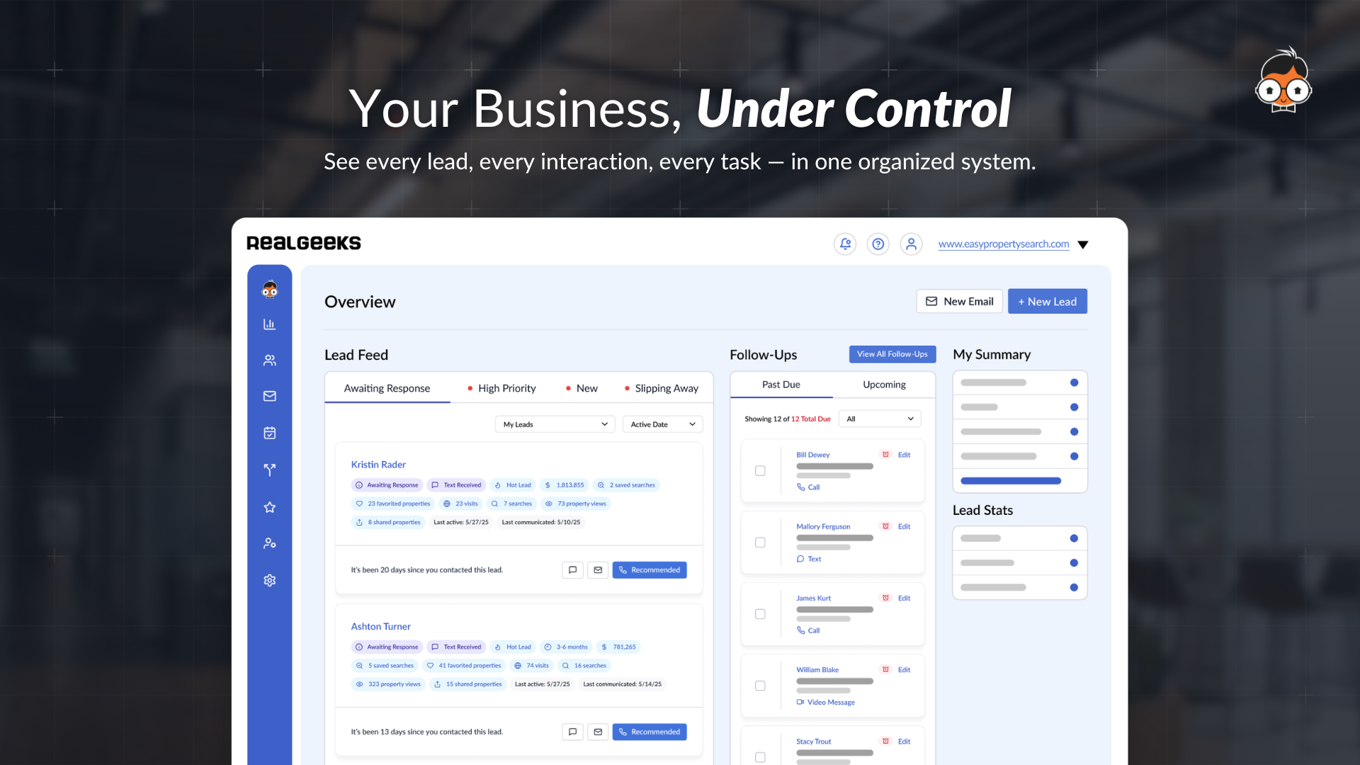 Real Geeks has become my go-to CRM for one simple reason — it actually does what it says it’ll do. It keeps my leads organized, reminds me who I’m supposed to follow up with before they forget who I am, and the automation is tailored perfectly to my needs.