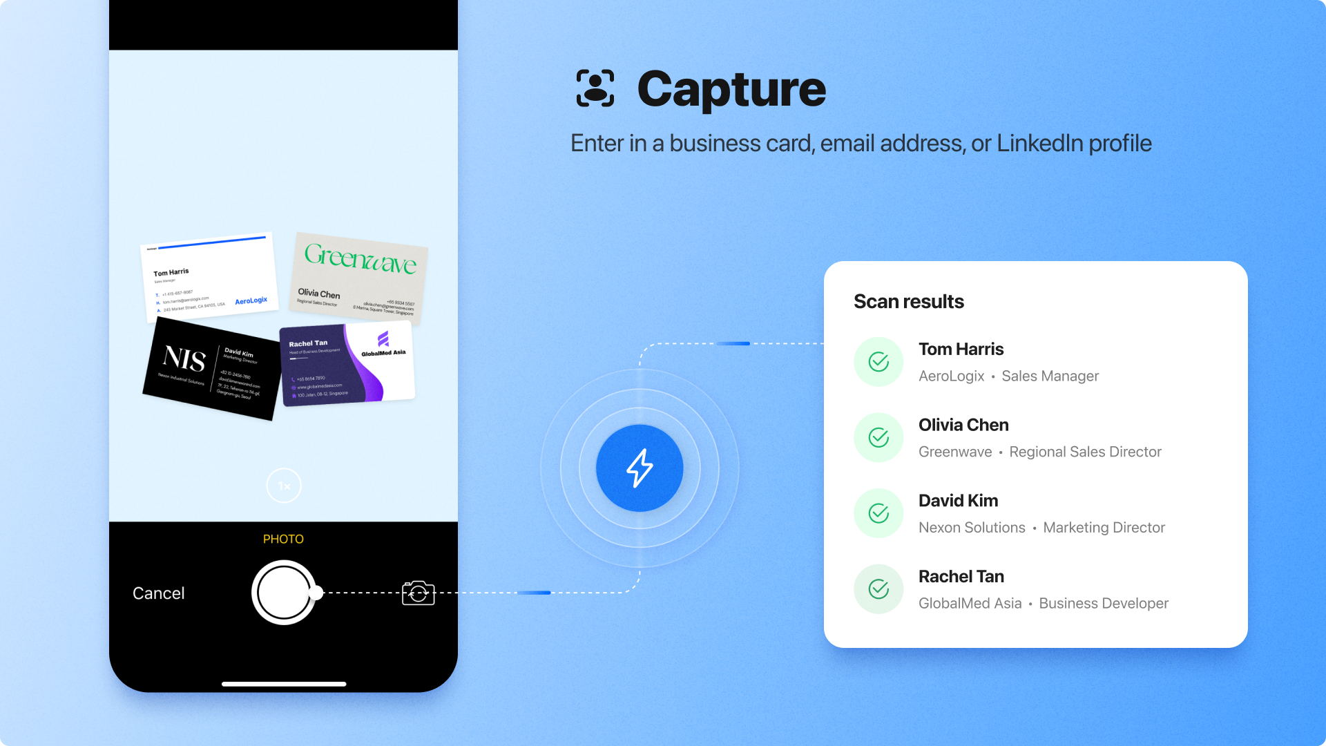 The In-Person GTM Platform for conferences and events. Scan event badges, capture leads, enrich contact info & sync every lead to your CRM. Measure event ROI, eliminate manual work, and drive pipeline from events.