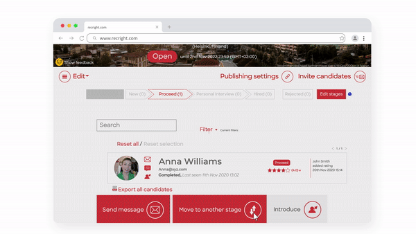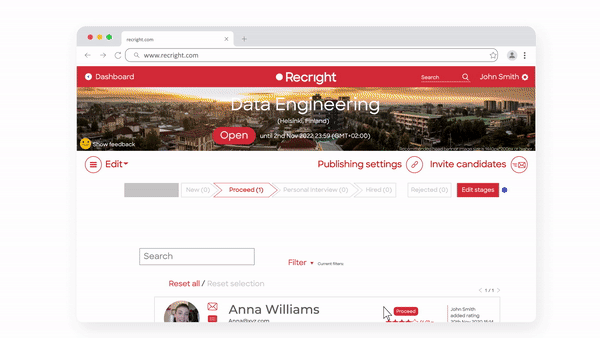 Dashboard view gives you and your colleagues an immediate understanding of how your recruitments are proceeding.