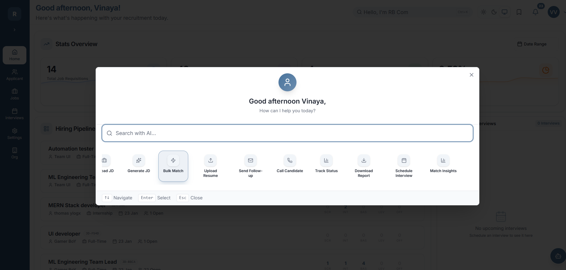 The platform was built to help you get better at recruiting. Find better talent, conduct more meaningful interviews and get the data you need to improve your process and make the right decisions, faster.