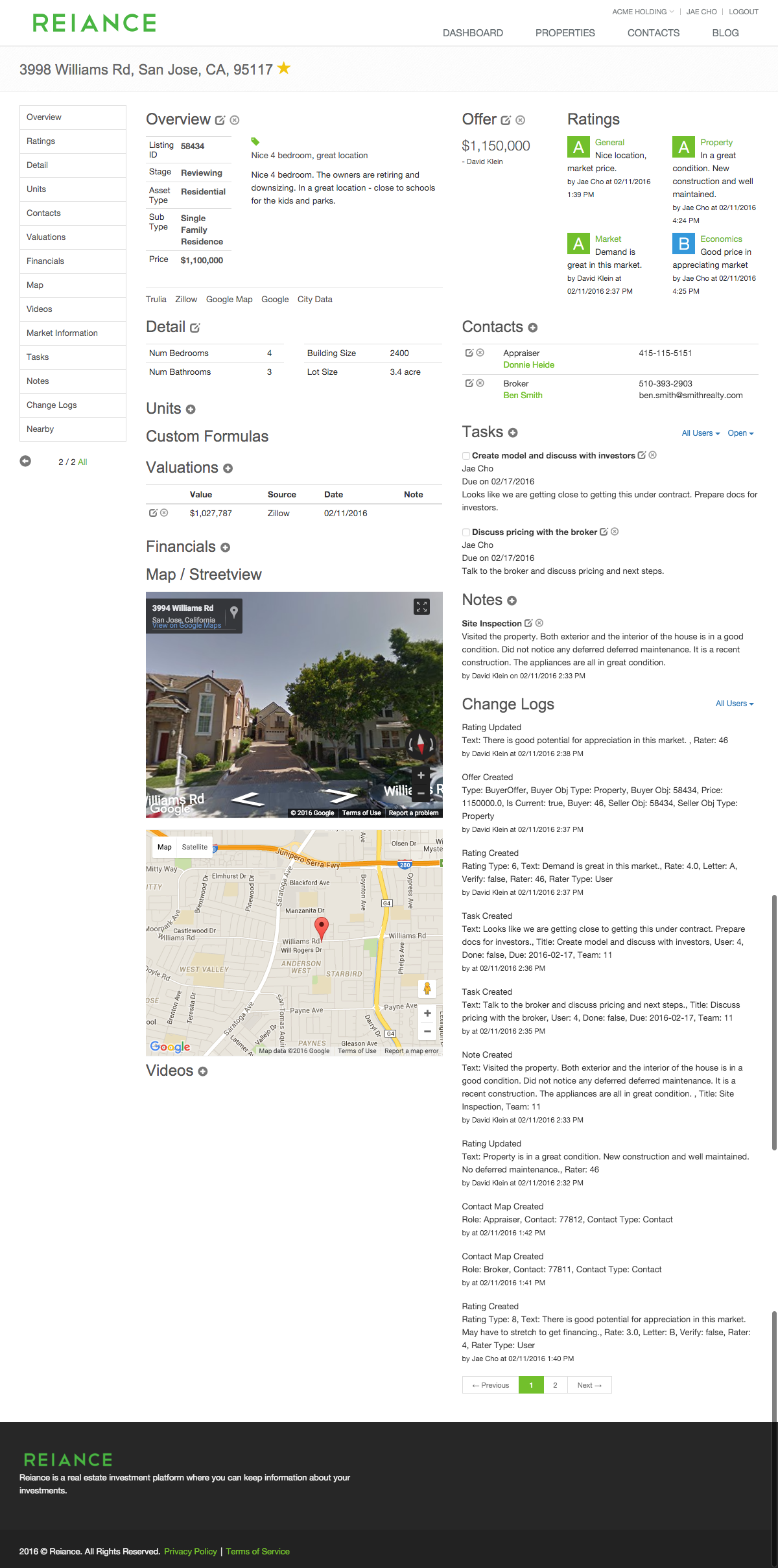 Two great features are the inclusion of Google Maps and Youtube functionality. The Google Maps functionality automatically embeds a map of the asset into each entry. You can also embed a Youtube video of the asset that you've uploaded. This allows you to conveniently and seamlessly show other team members features or details in real time and adds an extra dimension of information to team discussions.