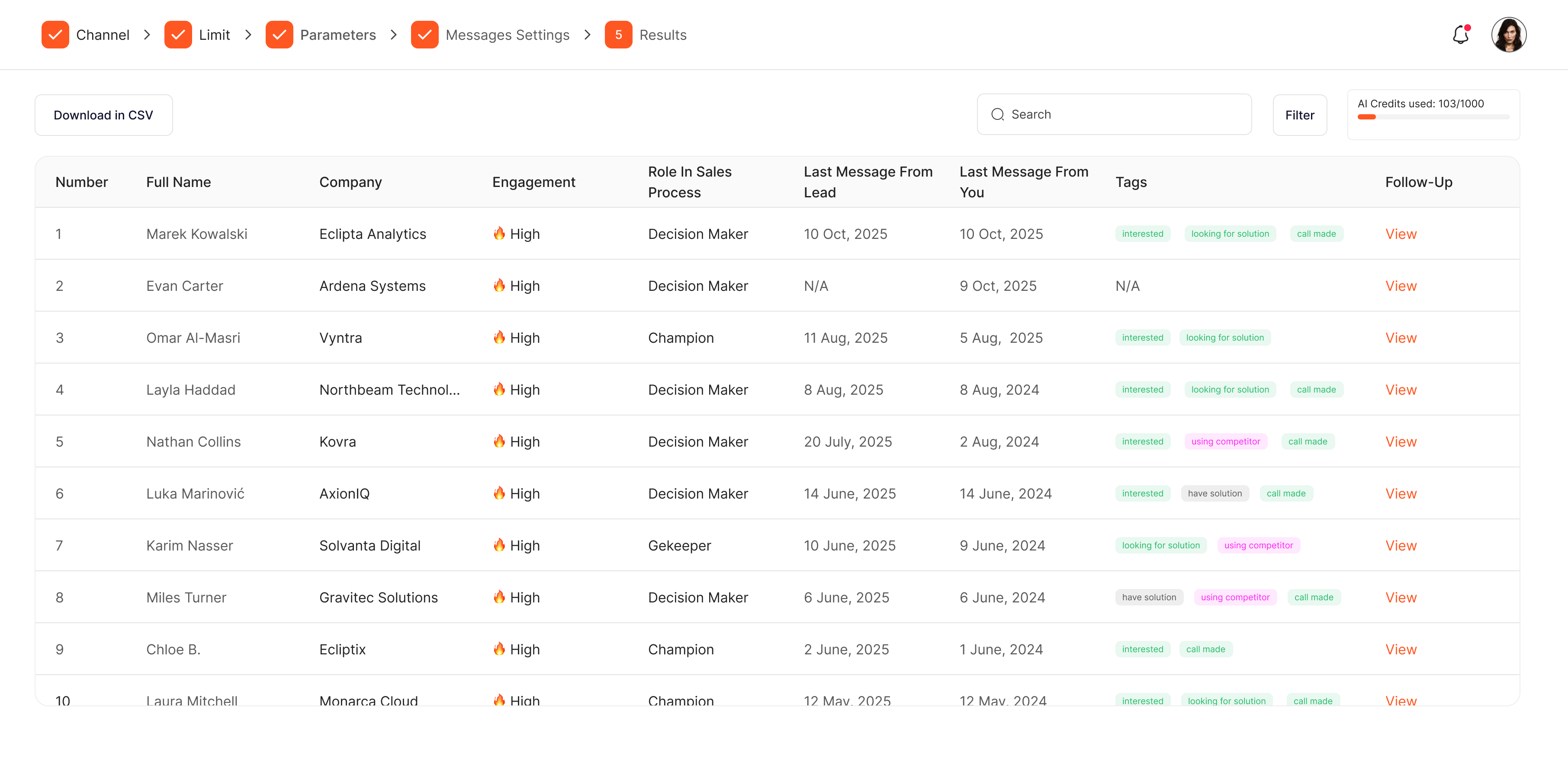 Allows users to define custom filters and instantly find re-engagement opportunities.