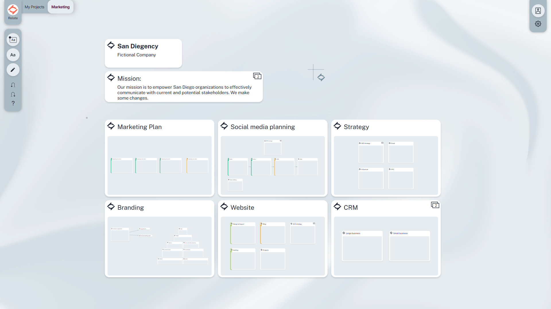 Relate is a digital collaboration platform designed to help organizations and teams transform the way they manage knowledge, ideas, and projects. With its intuitive and visual mapping features, Relate enables companies to build a clear, shared understanding of processes, workflows, and strategies. Whether you are onboarding new employees, developing training programs, or driving complex team projects, Relate provides the tools to keep everyone aligned and engaged.
