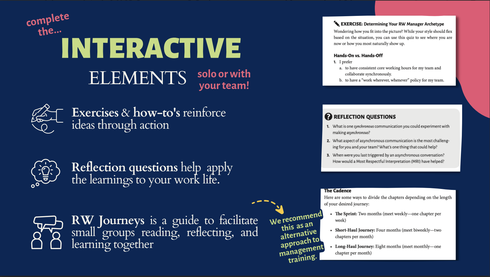 - Curated Monthly Lessons: Participants engage in 30-minute leadership lessons each month, featuring videos, interactive activities, and management tools tailored to the organization's specific needs.