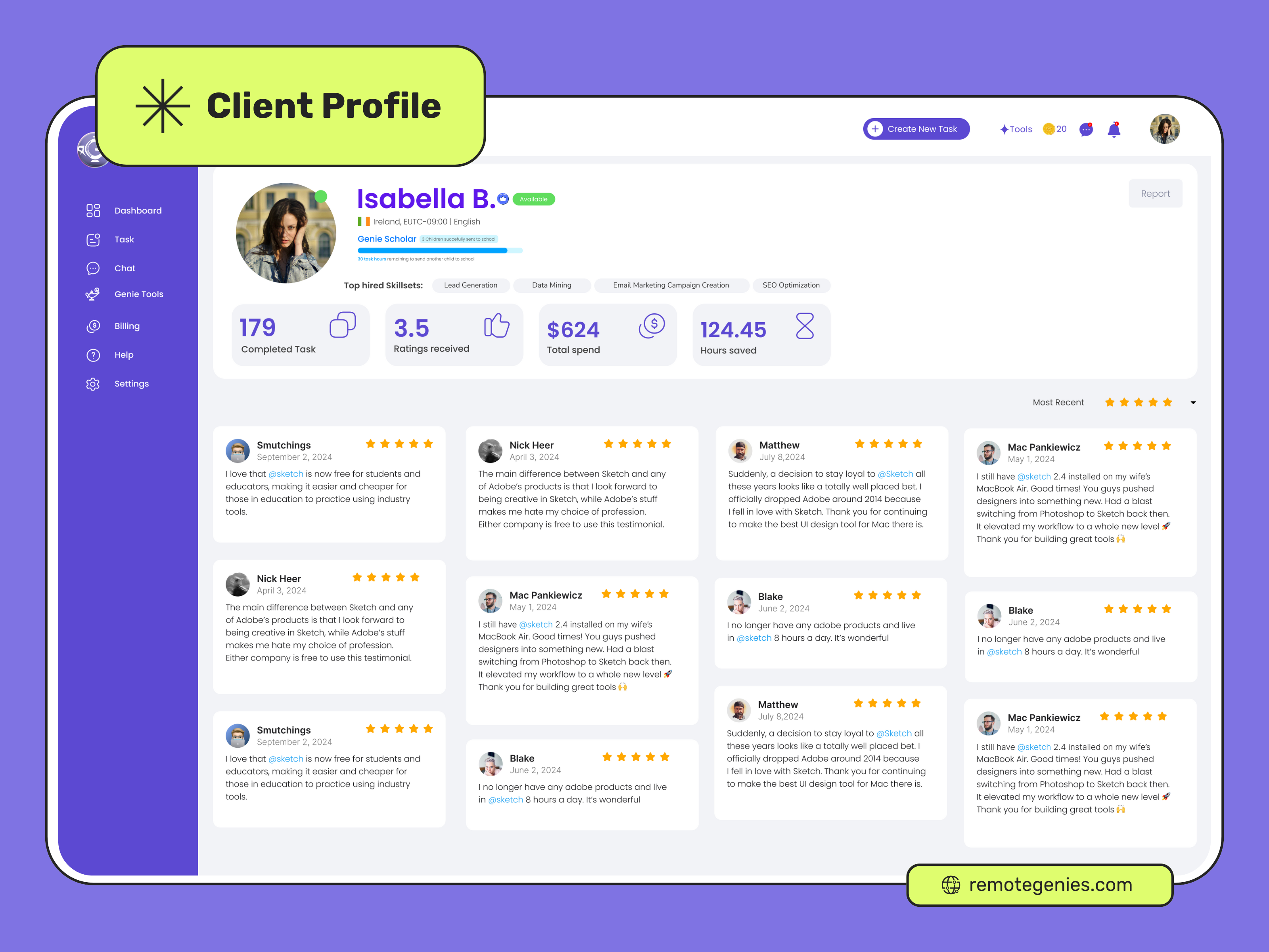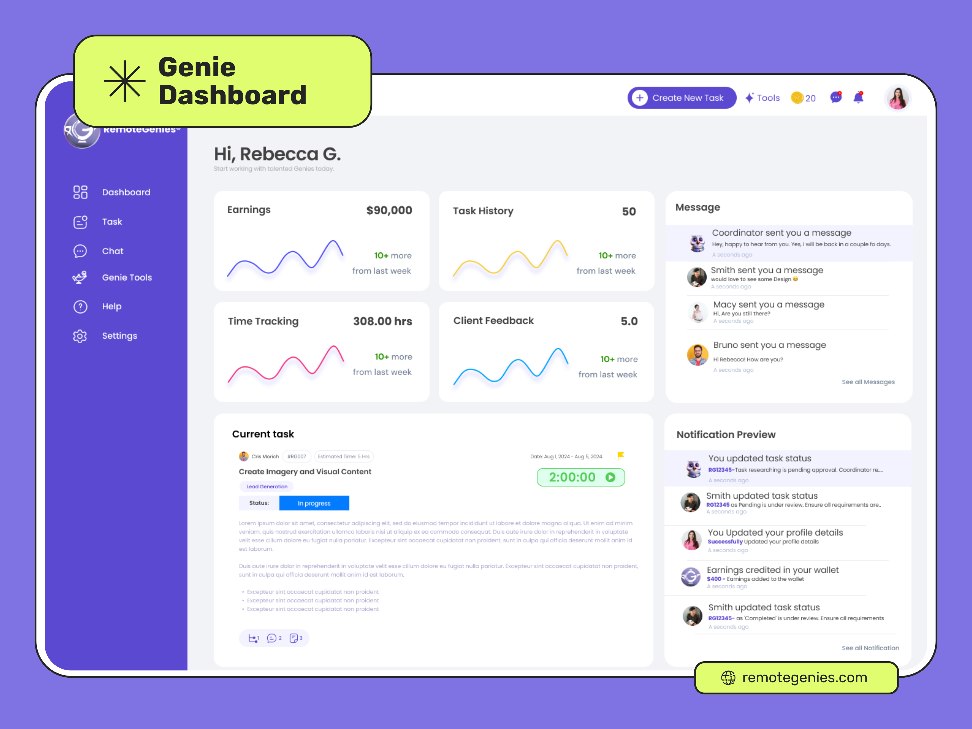 Using RemoteGenies has been such a smooth experience for me. The platform is really user-friendly and makes remote collaboration effortless and stress-free. What I love most is the convenience it feels like everything I need as a freelancer is already here. I also found their supportive community incredibly helpful. They guide you, share advice, and make you feel like you’re not alone in the journey of landing your first client. Review collected by and hosted on G2.com.