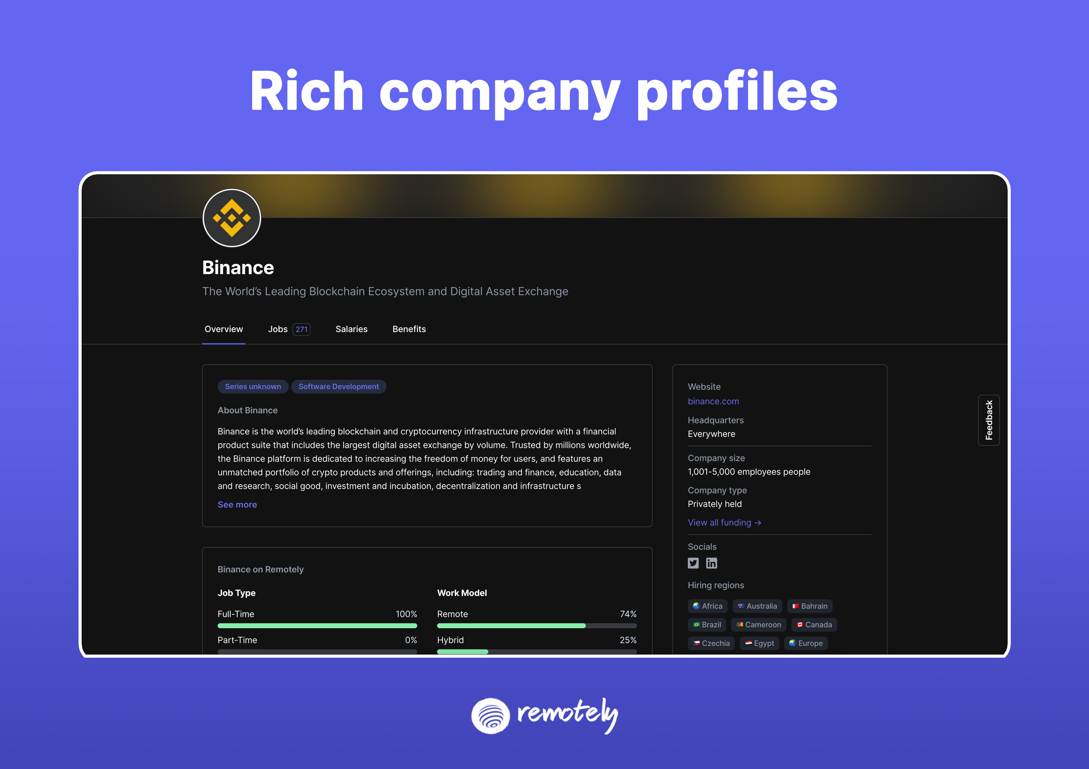 Its helps to search job throughout the countries helping us finding the relevant job postings by the company.All though it's not popular as it's primary purpose would be remote jobs mostly. Which also filters by country to country. Review collected by and hosted on G2.com.