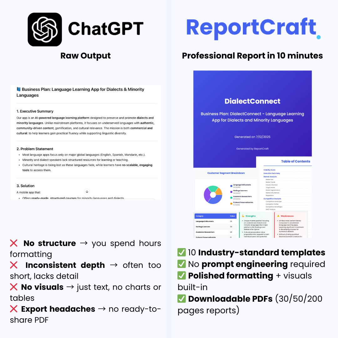 The process is simple: Answer a few simple questions about your business idea. AI will use your response to generate a comprehensive plan. Once you're done, review, download, and share it with anyone.