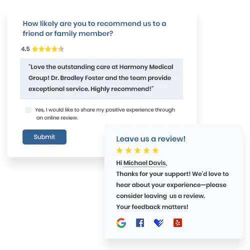 You will receive real-time notifications for all patient feedback & reviews, allowing you to perform immediate service recovery and resolve concerns as they arise. By addressing issues quickly and consistently, you can improve patient satisfaction while strengthening your online reputation and attracting new patients.