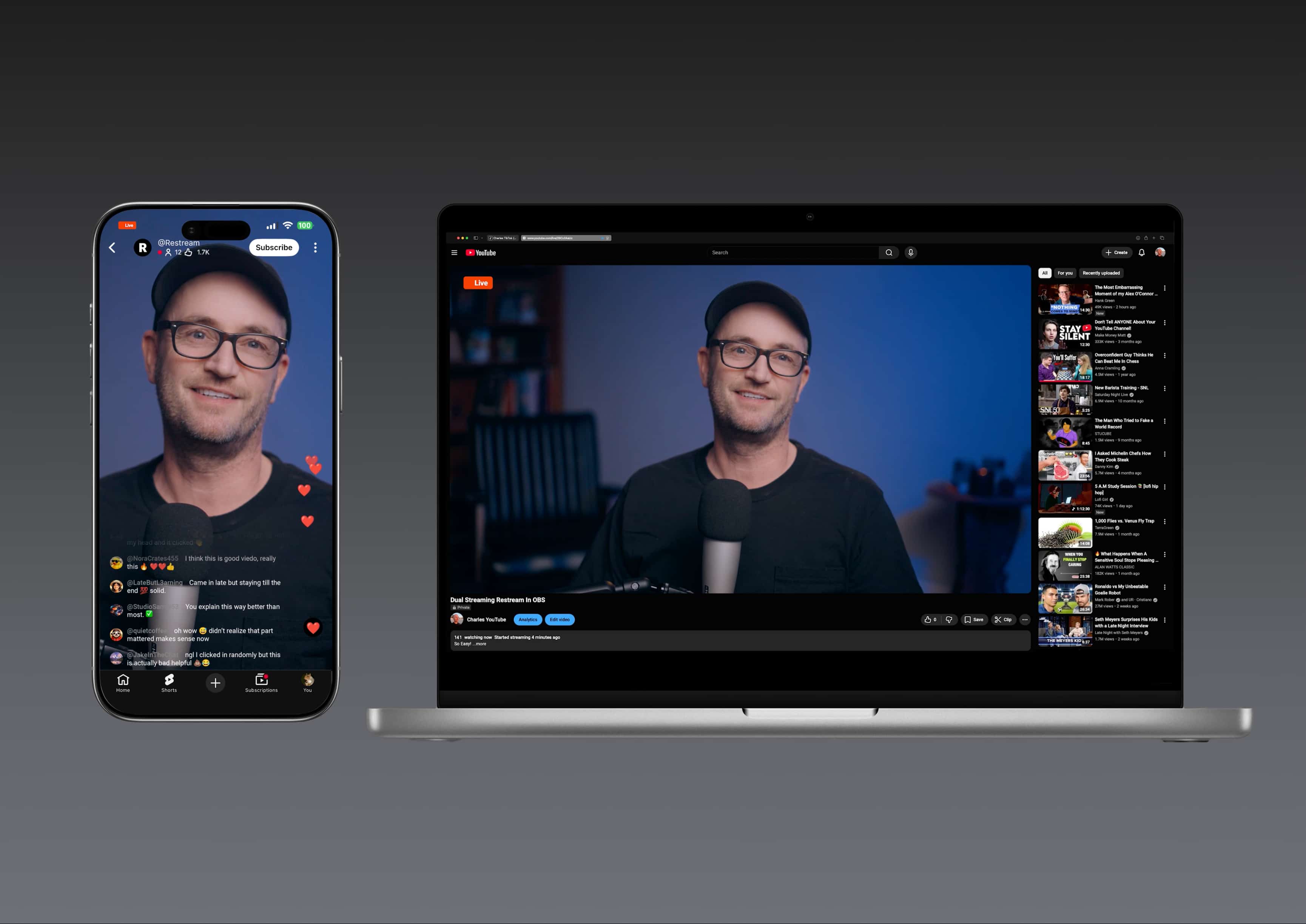 Restream is a live video platform that runs entirely in your browser, letting individuals, creators, and businesses broadcast to 30+ social media and streaming destinations at the same time — including YouTube, LinkedIn, X, Twitch, Instagram, and TikTok — from a single dashboard.