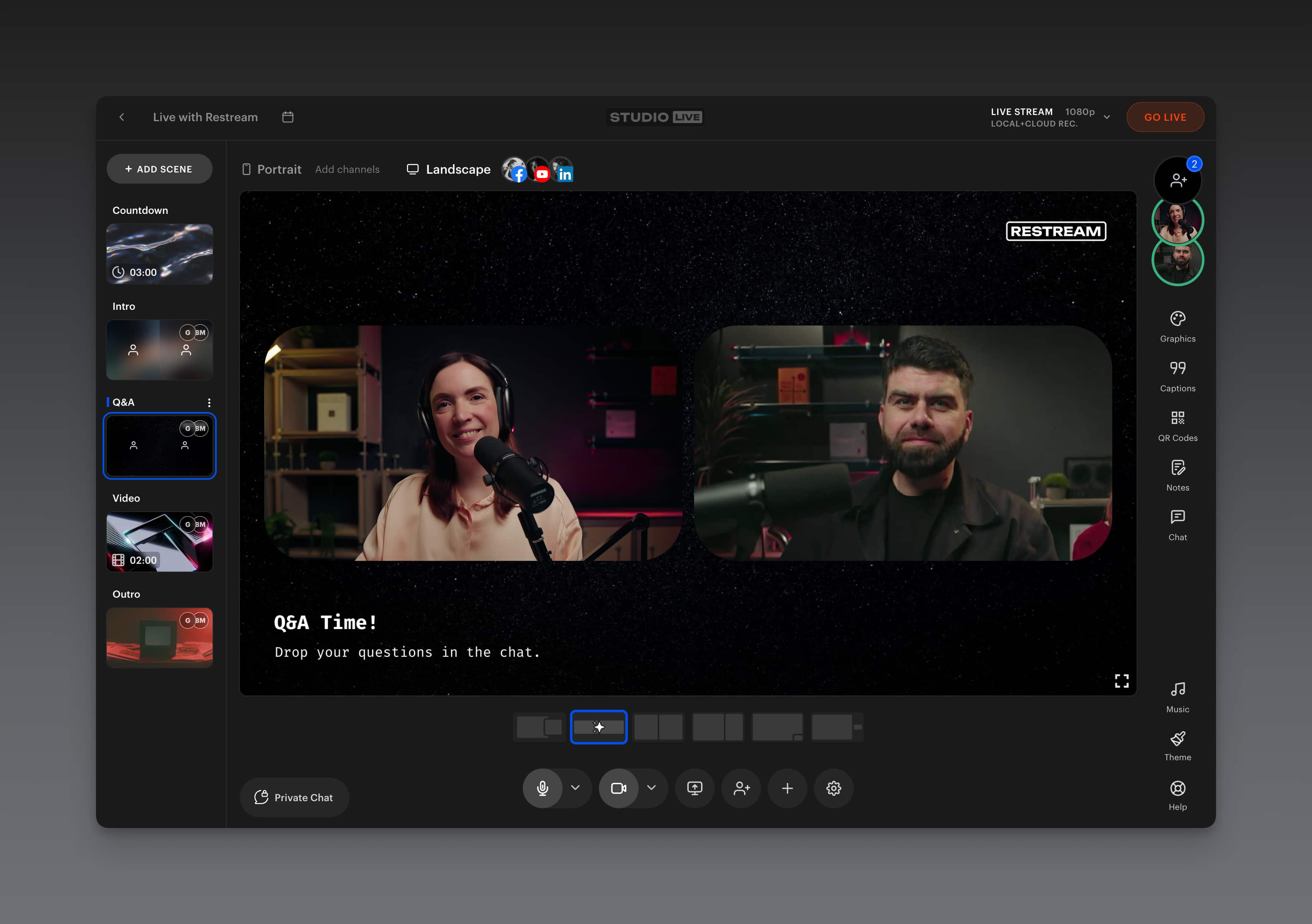 Teams — invite co-hosts and co-producers to shared workspaces, so your whole team can prepare, run, and repurpose streams together.