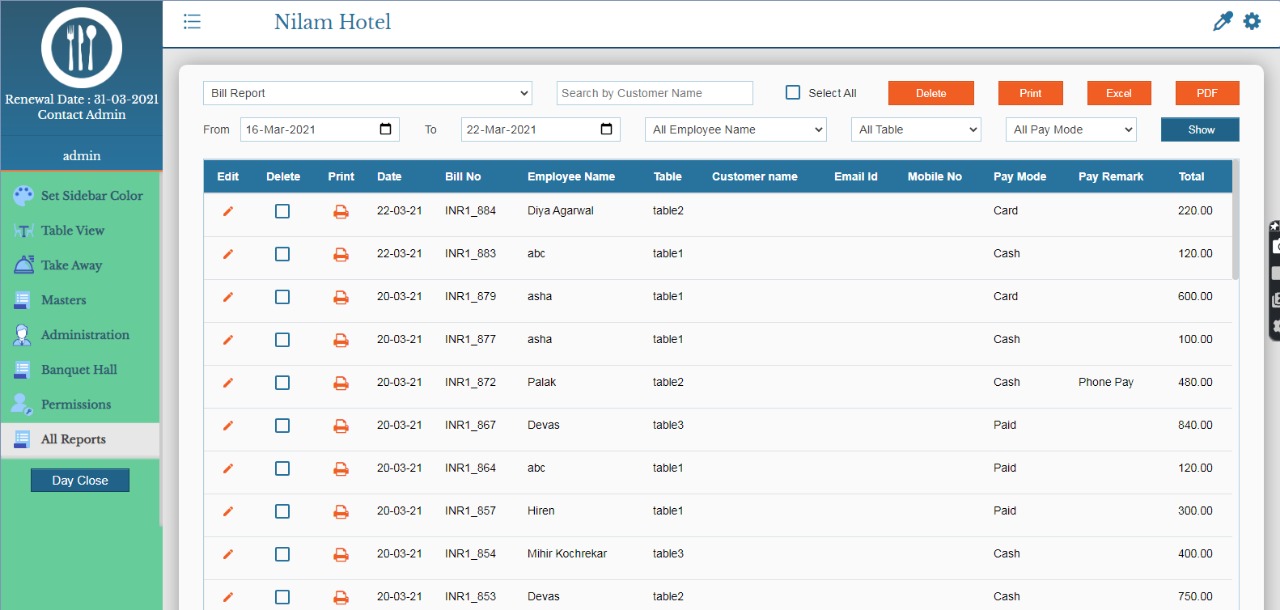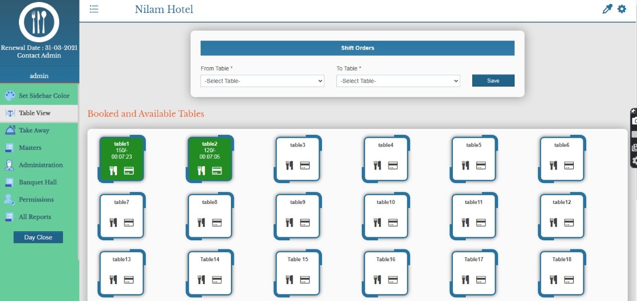 The software comes with free version to access and check its working for the registered users. It is the best restaurant pos software in India, having installation in more than 1000 + Restaurants all over India. When it is accessed by many users from different captains, at the same time the administrator can monitors the sales at the same time. KOT generated can be seen by the specific kitchen, at the same time it increases efficiency of hotel staff, putting less efforts and maximizing the orders generation capability for the restaurant. The administrator can put staff with specific table which can also be analyzed for sales of inventory from particular tables and sales capability of waiters.