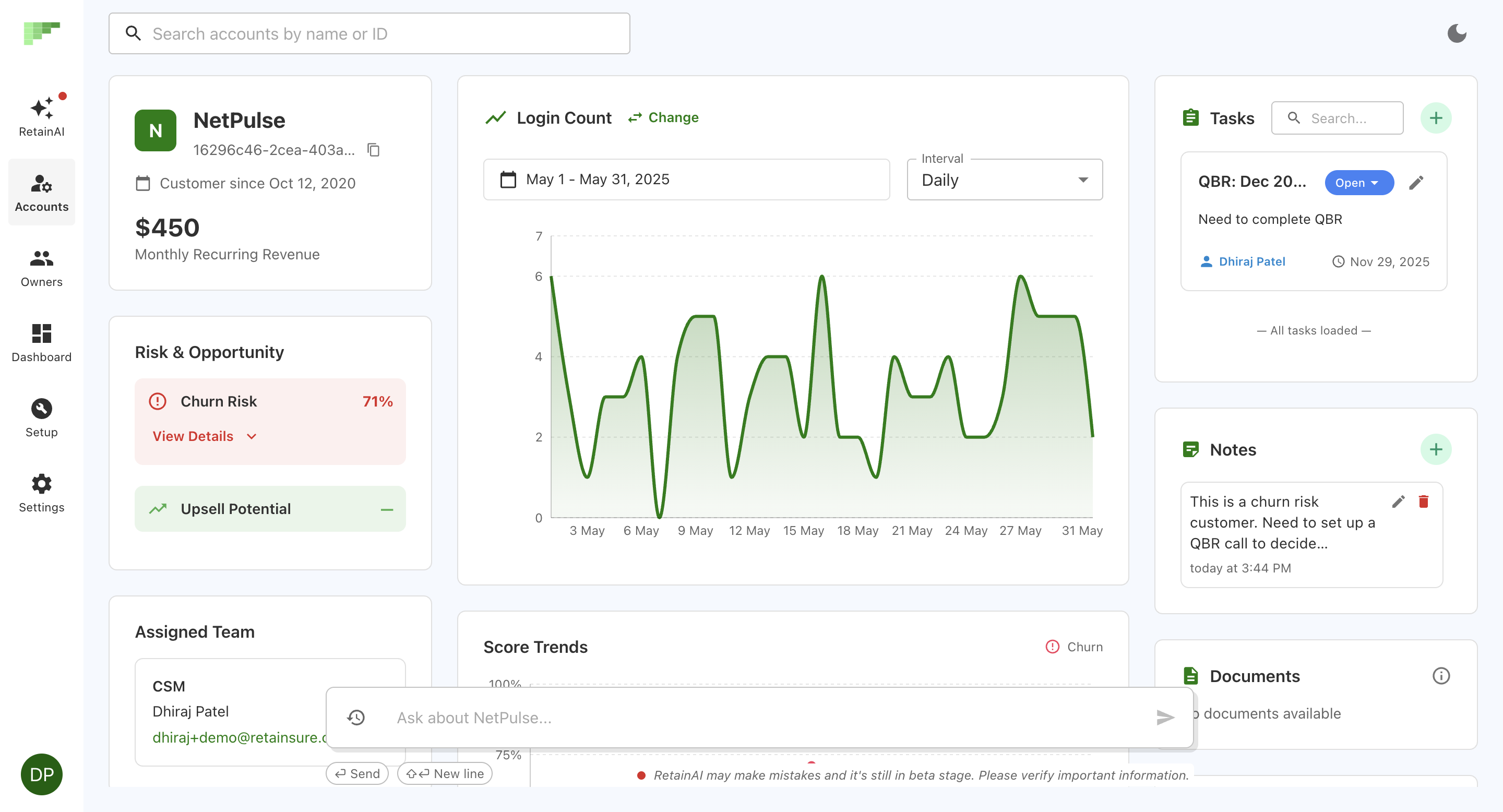 We use it at Mailmodo to move from gut-feel to clear actions. The dashboards surface the accounts and segments where churn is actually building, and the guidance is specific enough to act on, not just pretty graphs. The AI QBR feature is a real time-saver: it pulls trends and highlights into a short, structured write-up so we spend meetings on decisions instead of compiling data. Review collected by and hosted on G2.com.