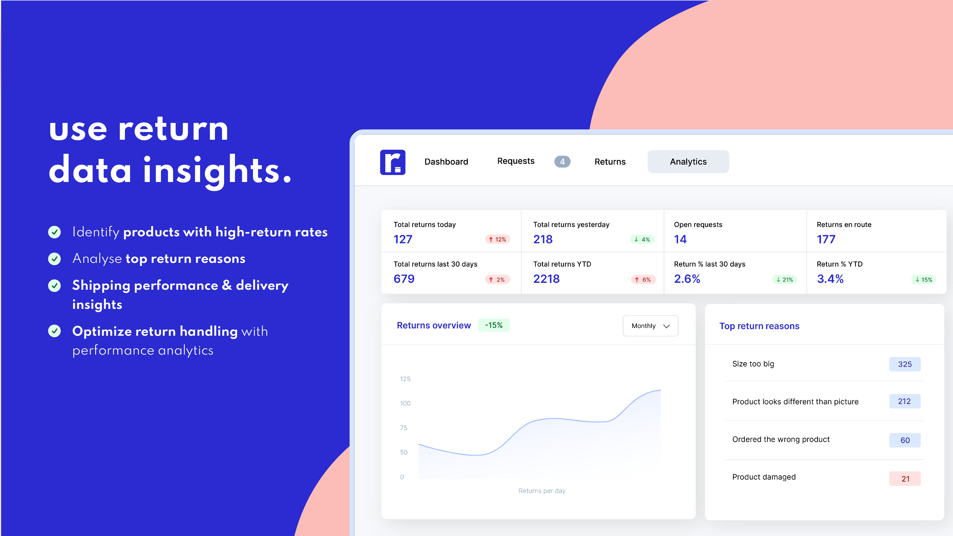 Automate your returns process with ReturnGO’s Returns & Exchange Portal. Provide your customers alternatives to refunds such as offering product exchanges and store credit.