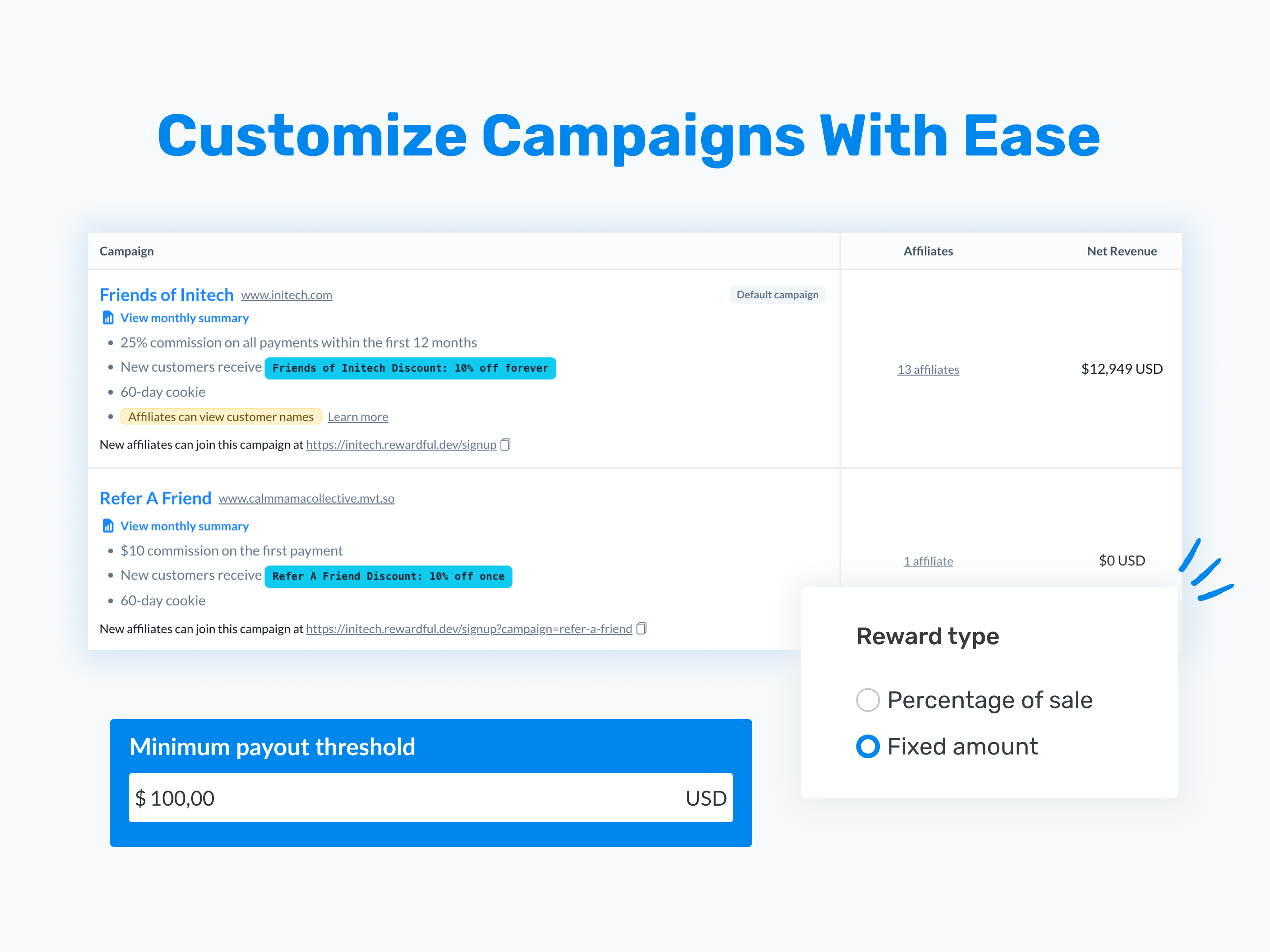 Very easy to set up an affiliate campaign and the integration with Paddle and PayPal made it a no-brainer for us when Paddle discontinued their in-house affiliate functionality. The email notifications are helpful (you get an email when an affiliate sale is made, and also notifications when there are outstanding payouts that need attention). Review collected by and hosted on G2.com.