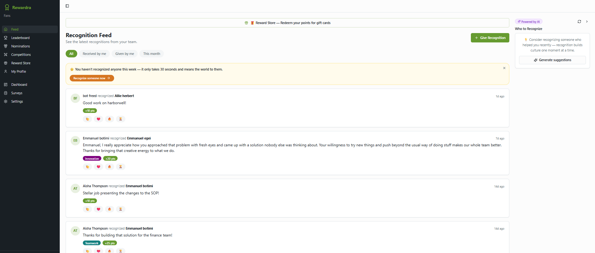 We are a recognition and rewards platform that helps you scale your company culture.
