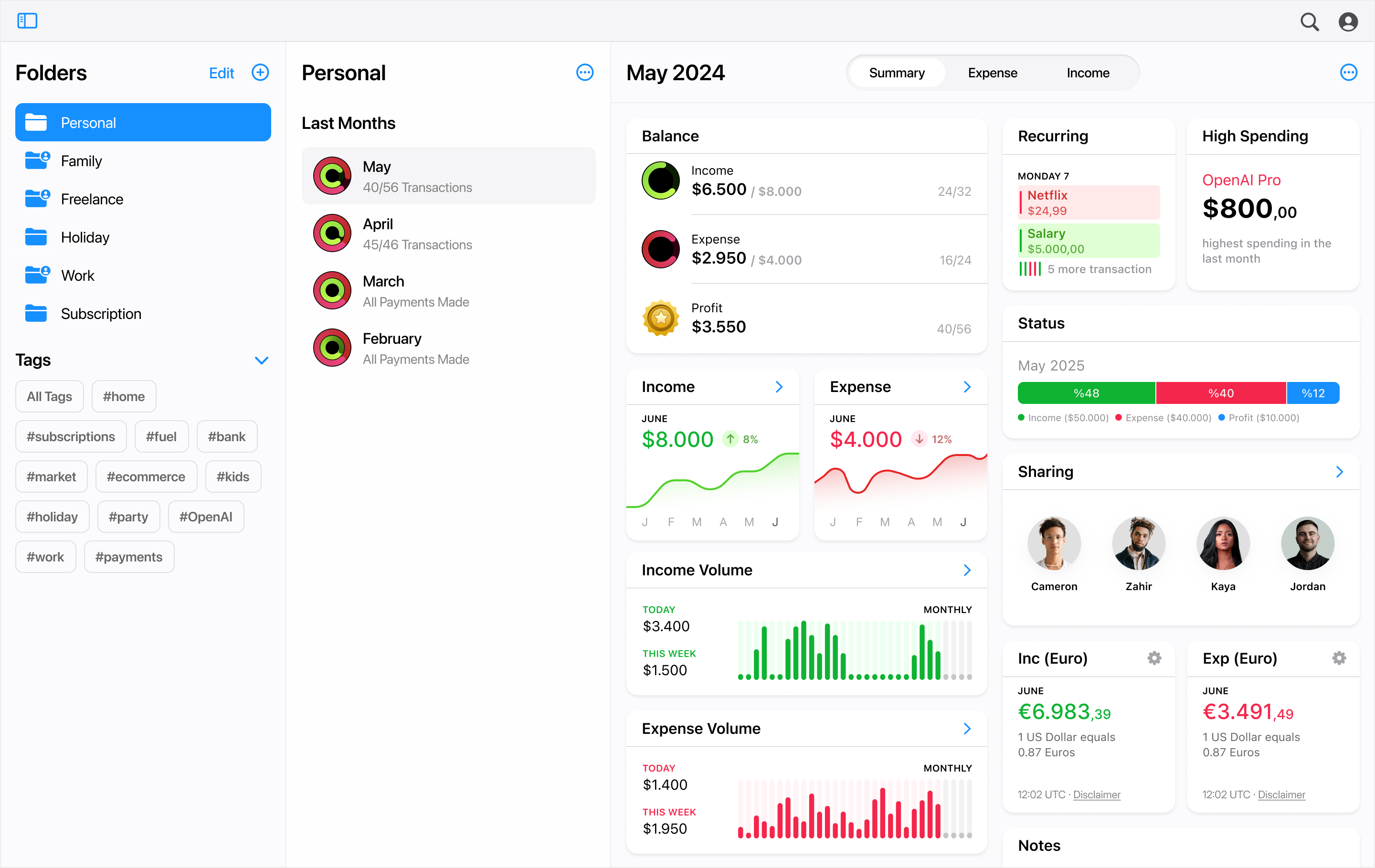 - Expense Tracking and Budgeting: Automatically categorizes transactions, tracks spending trends, and assists in creating and managing budgets with customizable categories and tags.