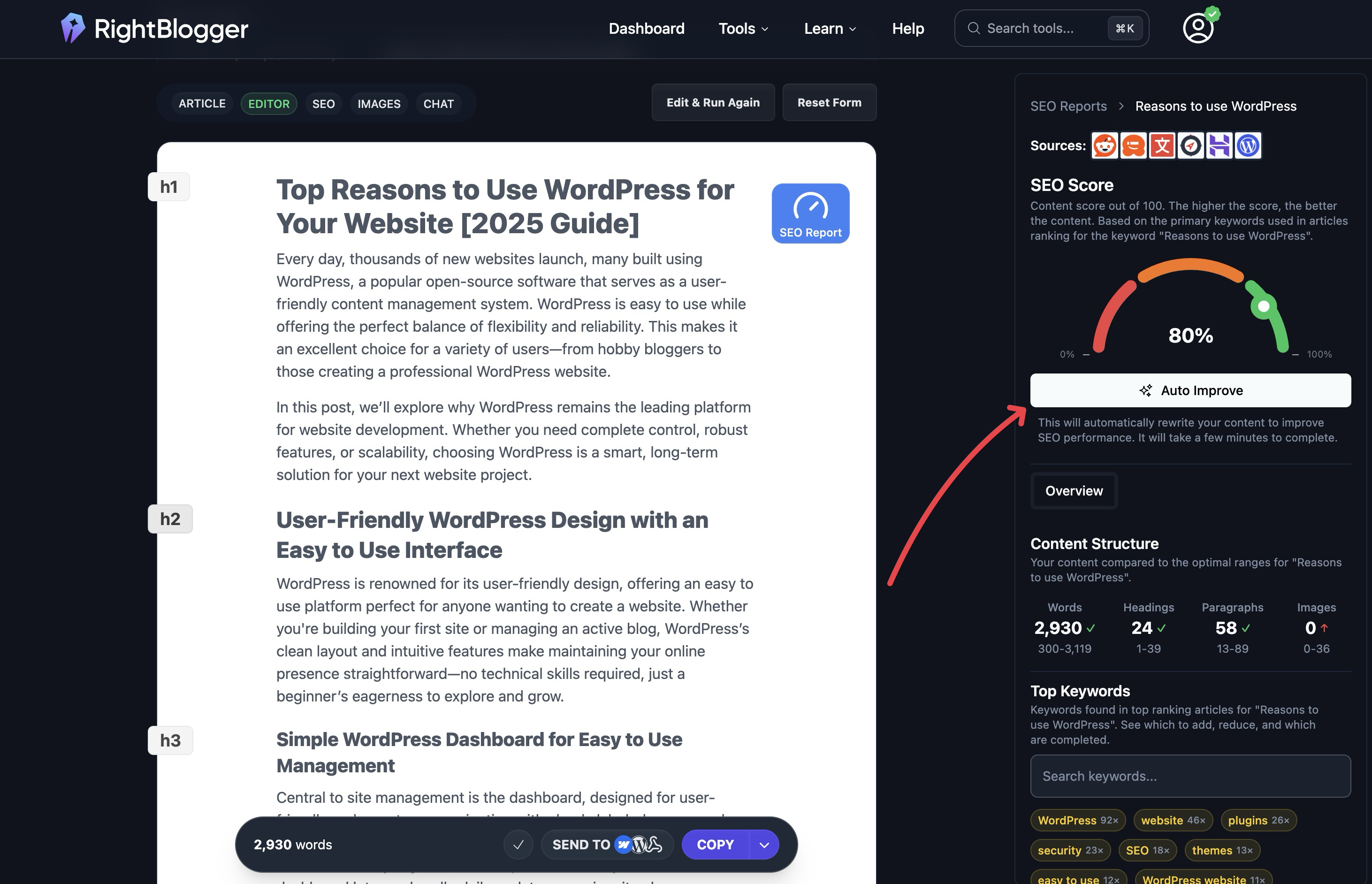 I love Right Blogger because it is incredibly user-friendly, which is particularly important for me as a beginner in the digital world without much technical knowledge. The platform's intuitive design makes navigating and using the tools really straightforward. Additionally, I appreciate the instructional videos they provide, as they are helpful in understanding how to effectively use the tools and platform. The support for content generation is fantastic, with smart suggestions for new content and AI-generated images for my Pinterest designs, aiding in planning my pins. Right Blogger goes above and beyond by helping refine my content with tools for SEO and keyword research, ensuring that my blog posts are optimized for search engines. I particularly appreciate the tool that reviews my blog posts for relevant keyword use. This attention to detail significantly aids in making my content appear across various search results. Overall, Right Blogger not only makes my workflow seamless but also offers solutions to problems I didn't even know I had, constantly introducing new programs and tools to enhance my blogging experience. Review collected by and hosted on G2.com.