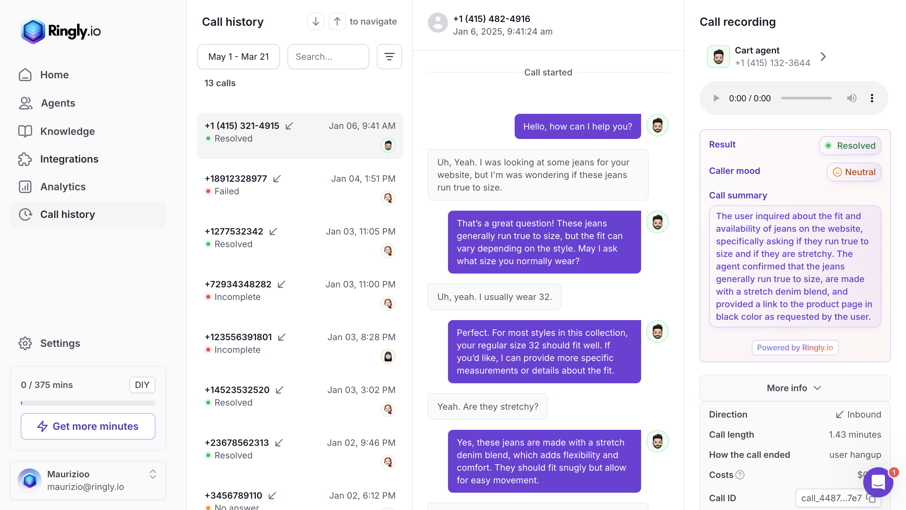 Anyway, Ringly.io has 18+ languages, 20 voices, extensive call analytics, it can leave AI voicemails, even make jokes if you want to!