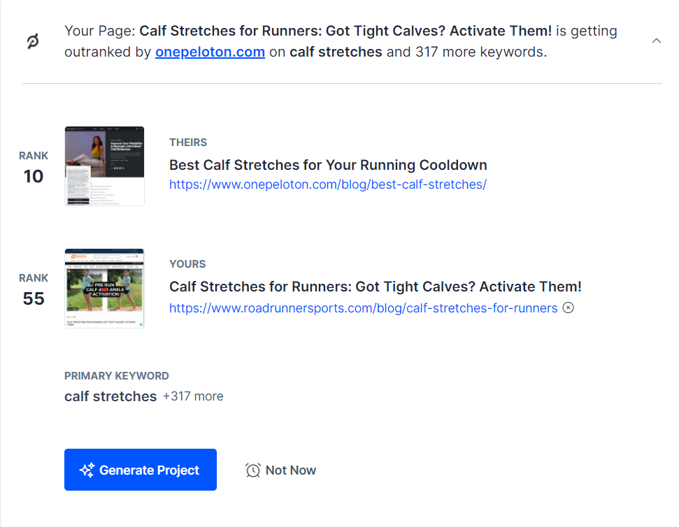 RivalFlow, from the makers of SpyFu, acts like an SEO coach: it analyzes the competitor pages that outrank yours and then gives you exact details on how to update your specific pages.