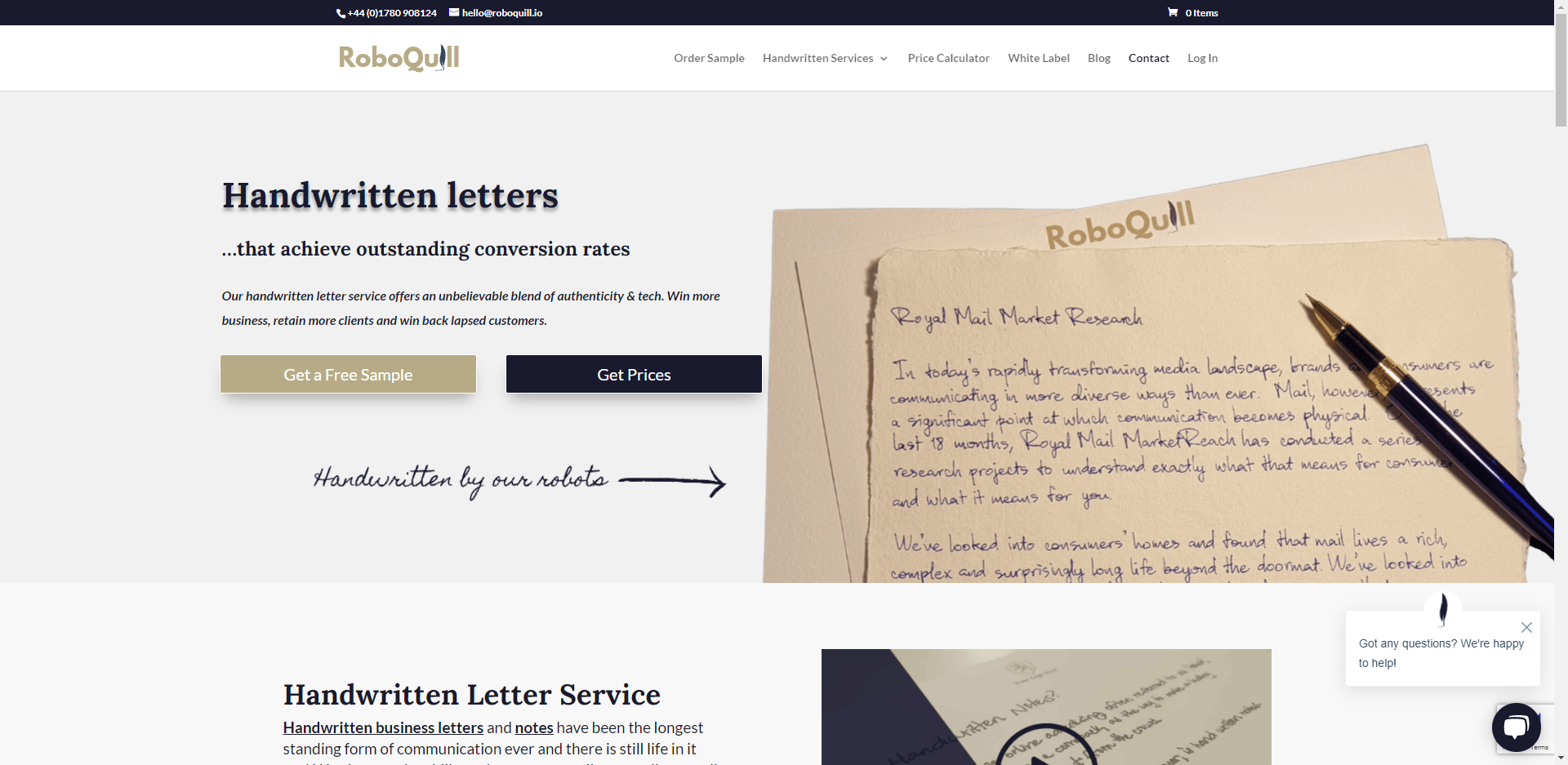 Robots hold actual fountain pens and use real ink to write the letters. Unlike several other 'handwriting' enterprises, these are not laser-produced. Their process has been tested and true, resulting in a superior product that is more authentic and appealing to the eye while remaining extremely cost-effective. Review collected by and hosted on G2.com.
