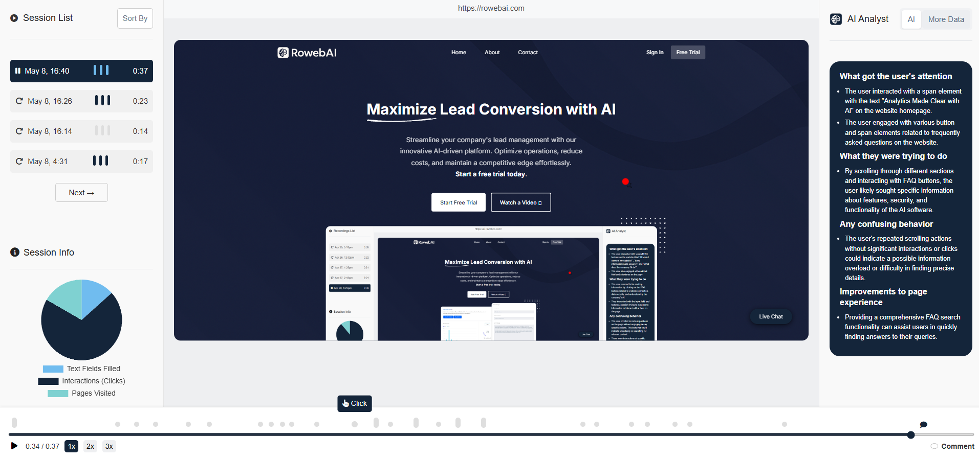 Smartlook is a tool designed to record the screens of real users on your website. It allows users to see what visitors clicked with their mouse, what they filled into a form field, where they spend most of their time, and how they browse through each page.