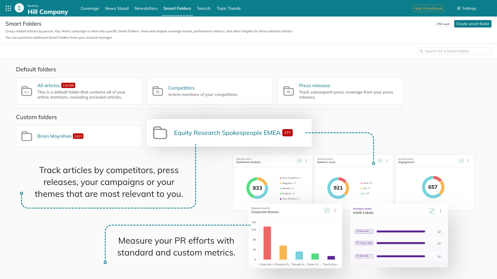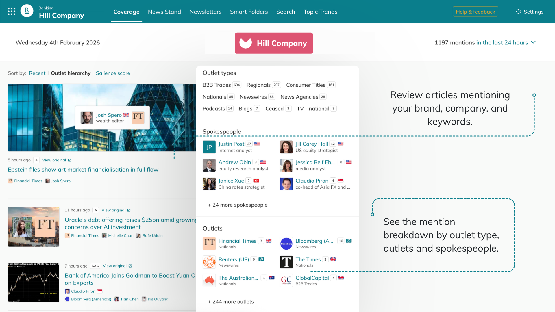 - Organise media mentions automatically by topic, theme, or spokesperson