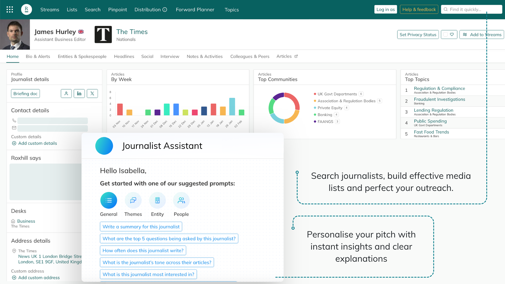 - Identify journalists covering relevant topics and uncover opportunities for inclusion