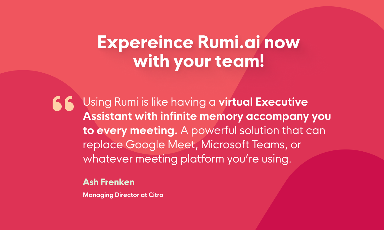Experience smarter meetings with Rumi.ai, your intelligent meeting assistant that not only captures and organizes your discussions but also enhances productivity through seamless integrations and advanced AI capabilities.