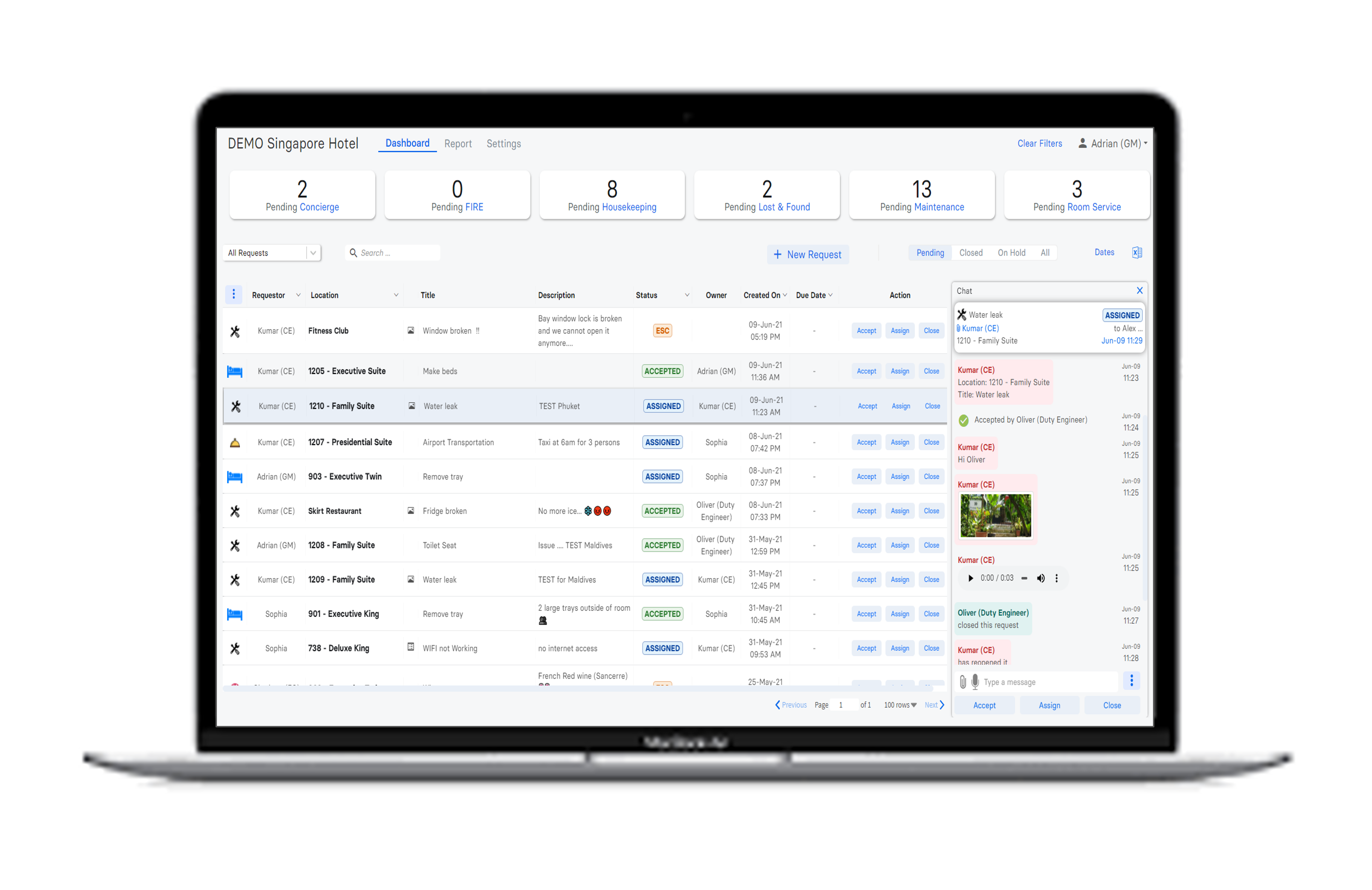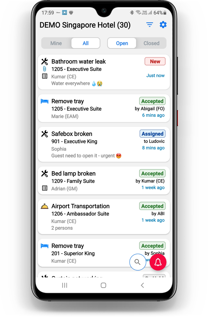 - Housekeeping Management: Assign tasks, monitor progress, and receive real-time updates to ensure rooms are clean and well-maintained.