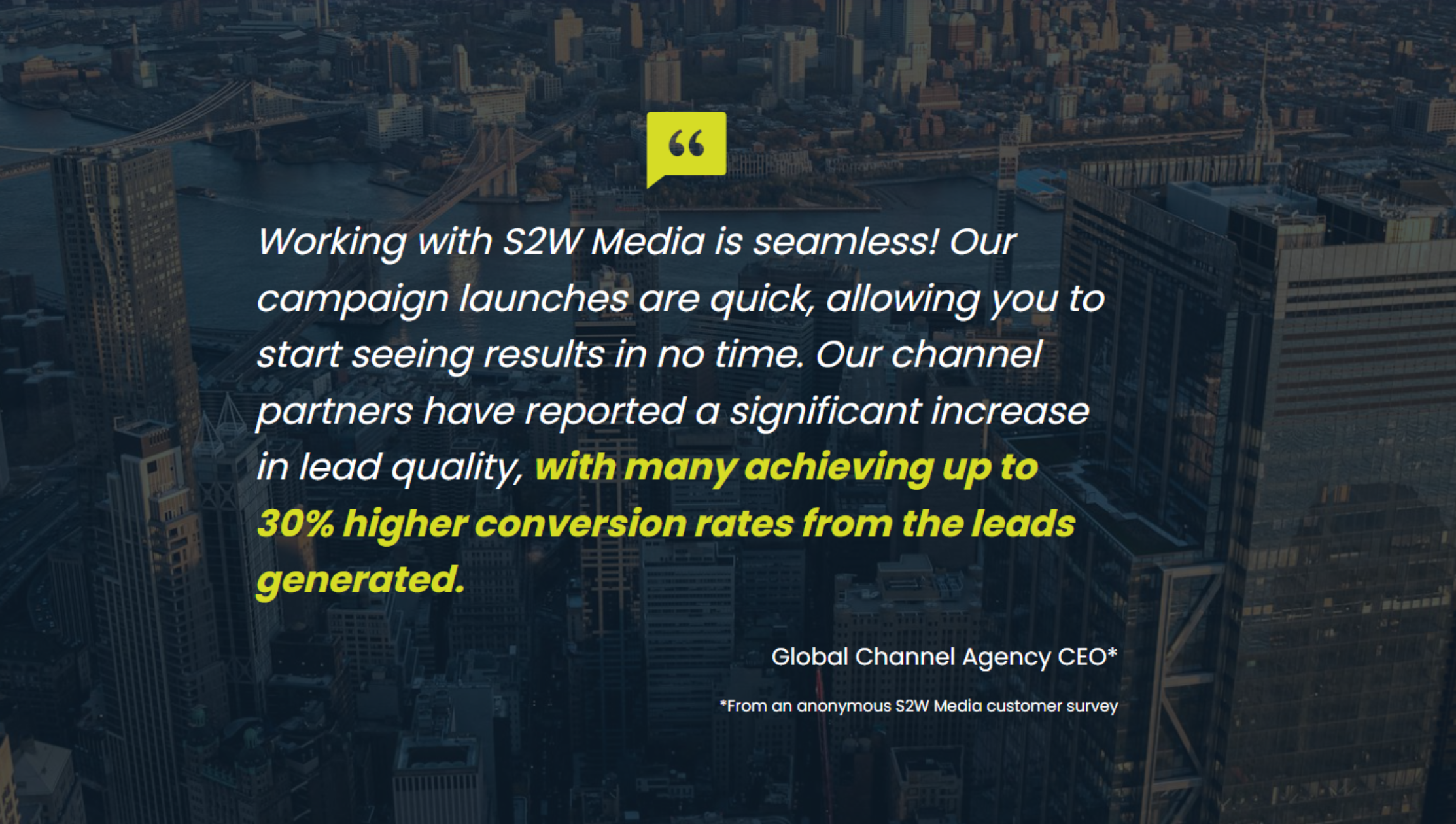 S2W Media knows how to cut through the noise. Their B2B demand gen approach isn’t just about quantity — it’s laser-focused on quality. The targeting, messaging, and speed with which they executed our campaigns made a big difference. We saw noticeable lift in engagement within the first few weeks. Review collected by and hosted on G2.com.
