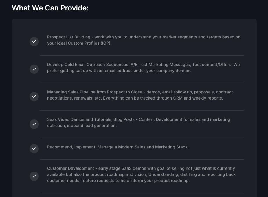 Provides a dedicated sales team, whose primal goal is to target YOUR prospects, design account-based sales campaigns and convert pre-qualified prospects into qualified Sales Appointments.