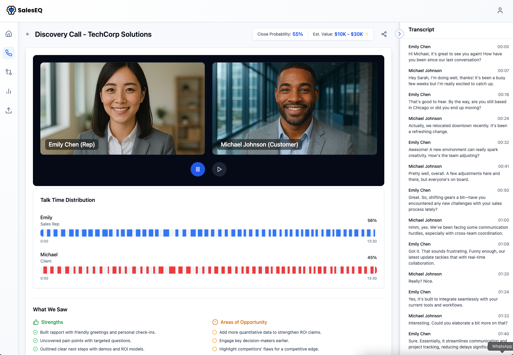 Chorus.ai is a leading conversation intelligence platform; it transcribes and analyzes sales meetings in real-time.