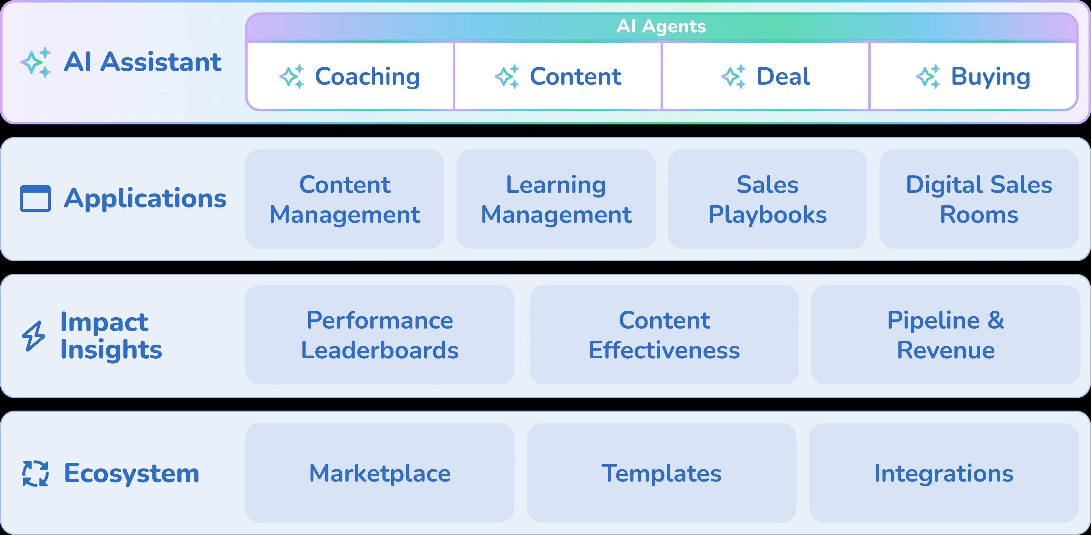 Content Management: Centralize, organize, and deliver sales content efficiently, ensuring reps have instant access to the most relevant materials.