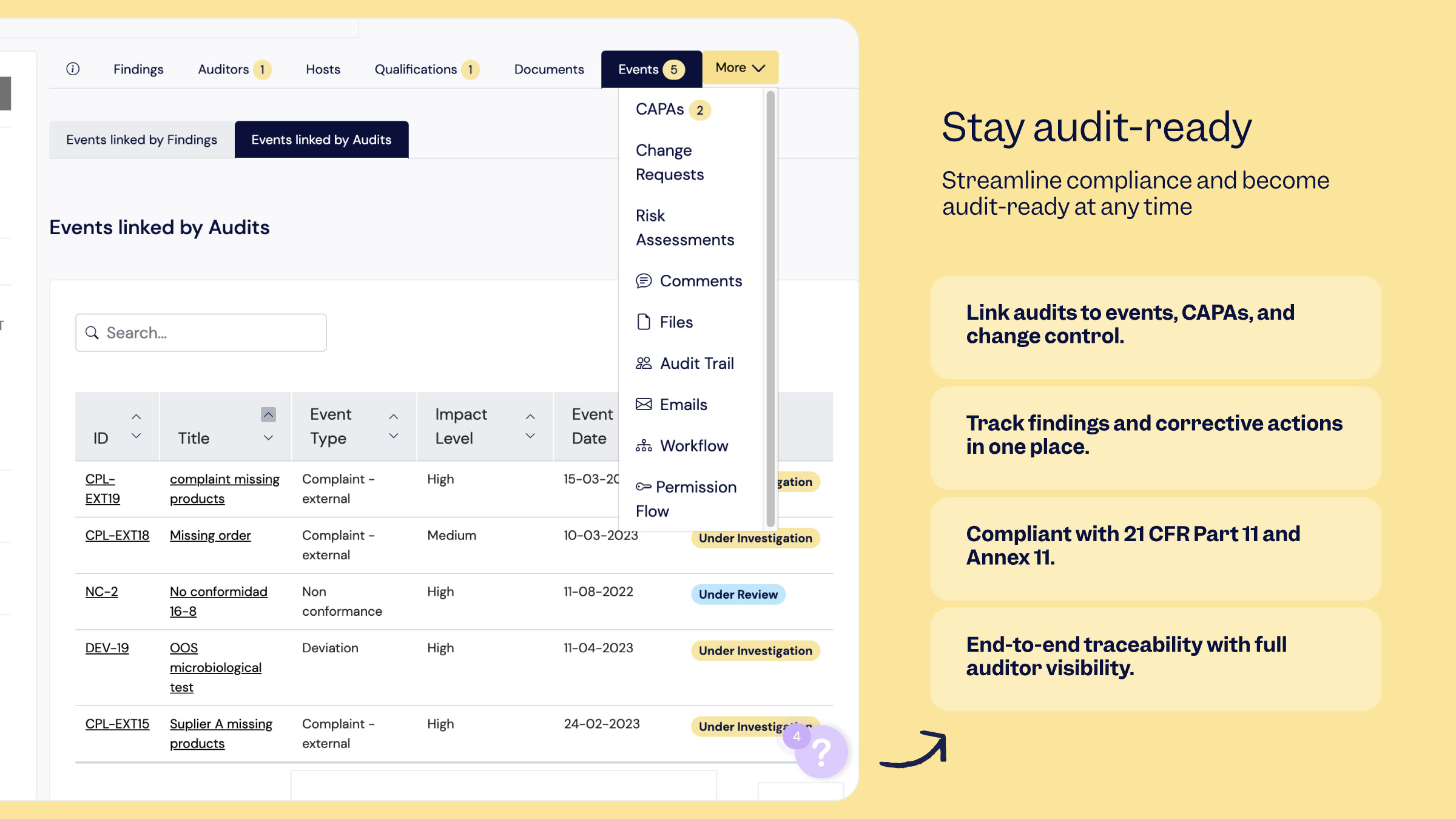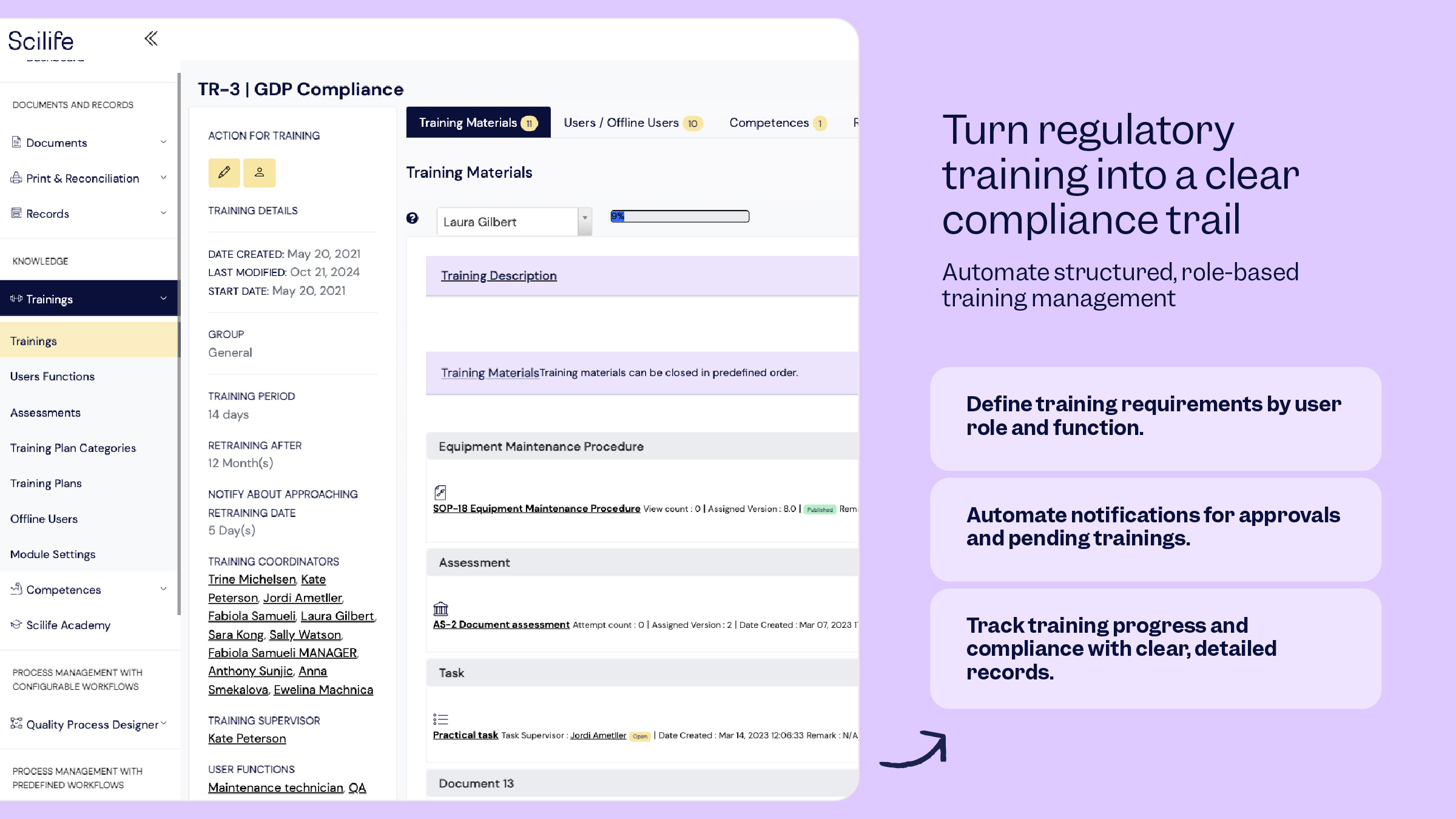Designed for GxP-regulated environments, Scilife enables quality-driven organizations to automate quality processes, reduce manual and repetitive tasks, and gain real-time visibility into what’s open, overdue, and at risk across workflows. The result: fewer surprises during inspections and more time focused on meaningful quality improvement.