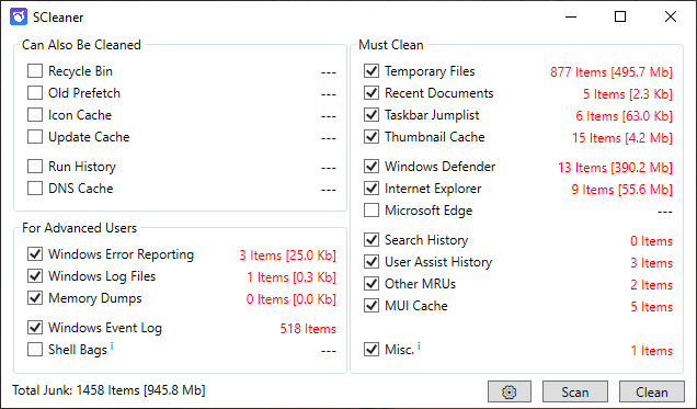 A total of six helpers analyze your system and enable deep cleaning operations. For example, you can delete temporary files, clean browser histories, caches, and cookies from all popular Internet browsers, and prevent installed applications and tools from starting automatically at system startup.