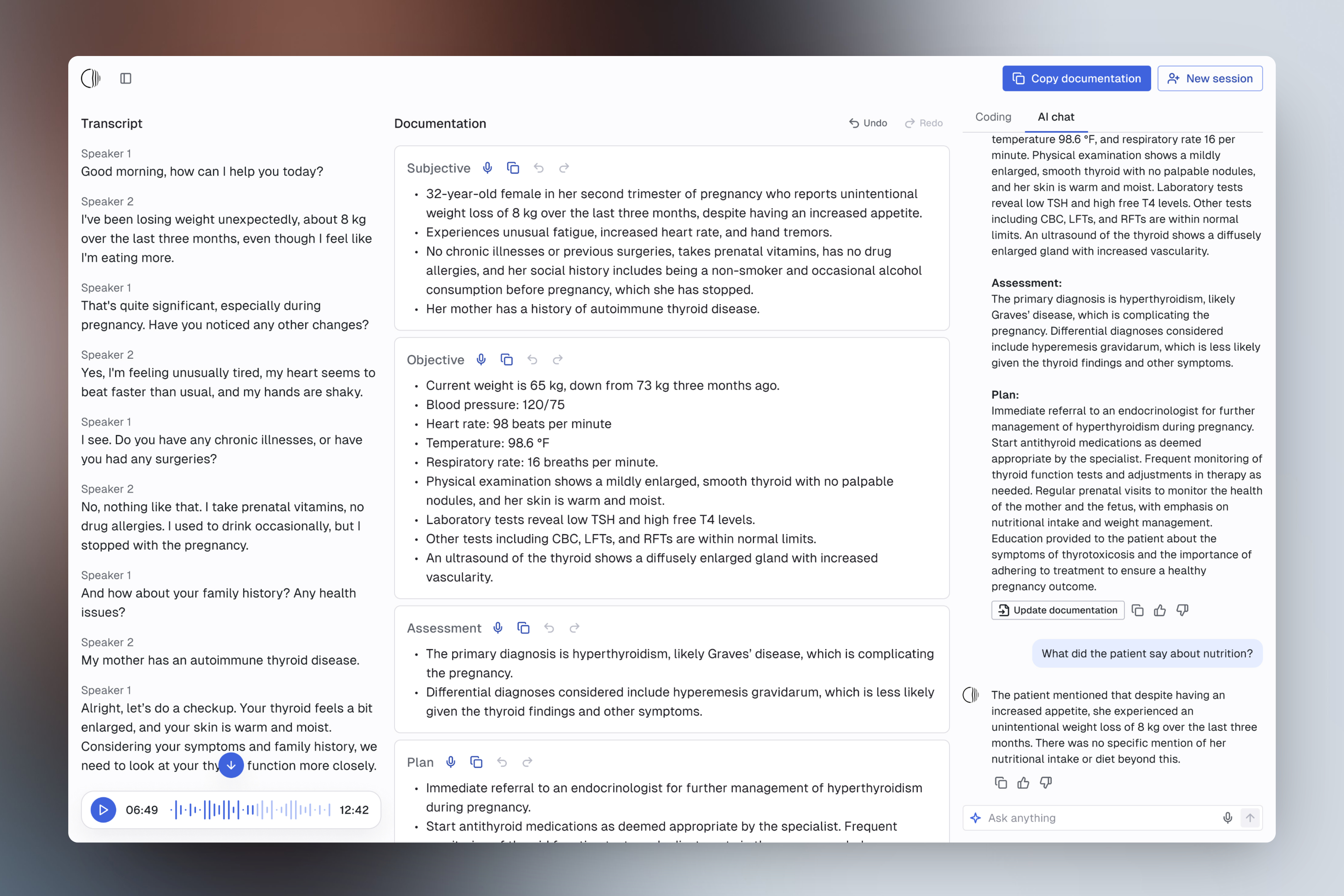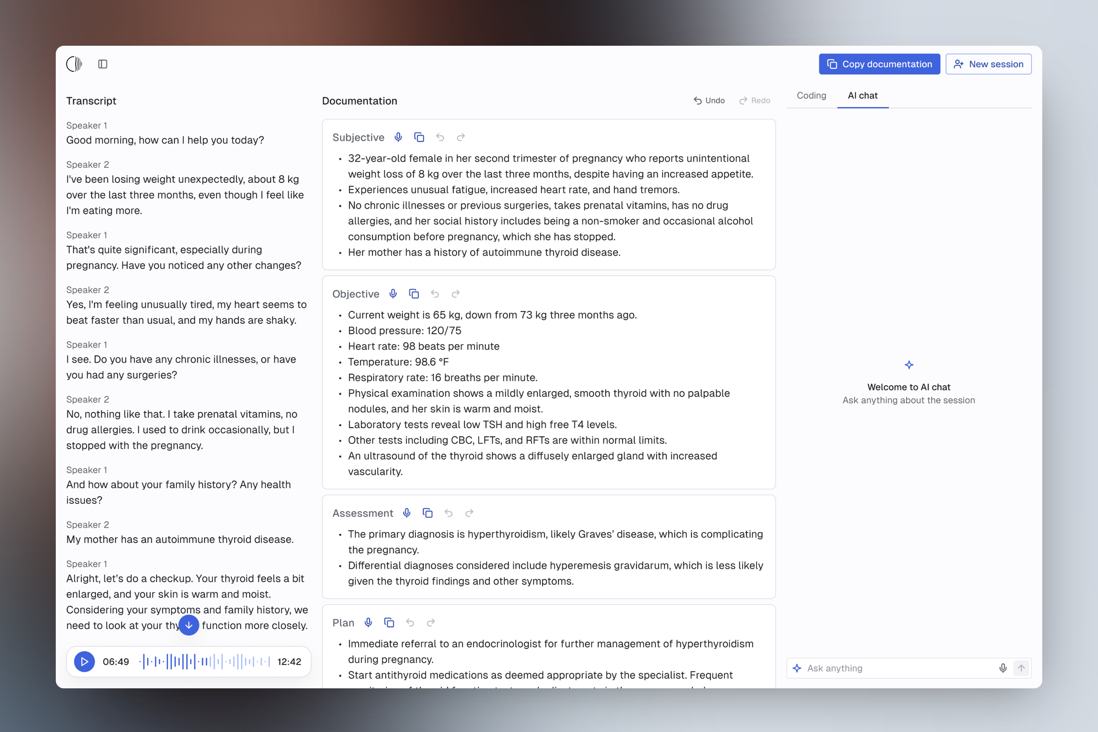 DeepScribe is an AI medical scribe platform that automates clinical documentation by simply listening to the natural conversation between you and your patient. With millions of conversations captured by thousands of users, DeepScribe is the most widely-adopted ambient AI scribe in the world. With DeepScribe, you can 1) Automate medical documentation and save up to 3 hours per day by capturing patient encounters from your mobile device - no additional hardware needed 2) Easily scale across your organization and improve patient care while reducing clinical burnout at the same time 3) Increase revenue and accelerate reimbursement due to highly accurate documentation completed within the fraction of the time 4) Maintain control over your documentation and customize how your notes appear in final form by using custom templates