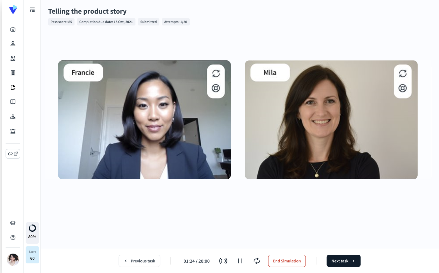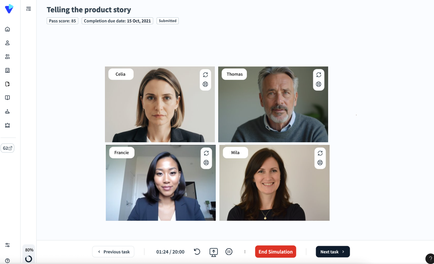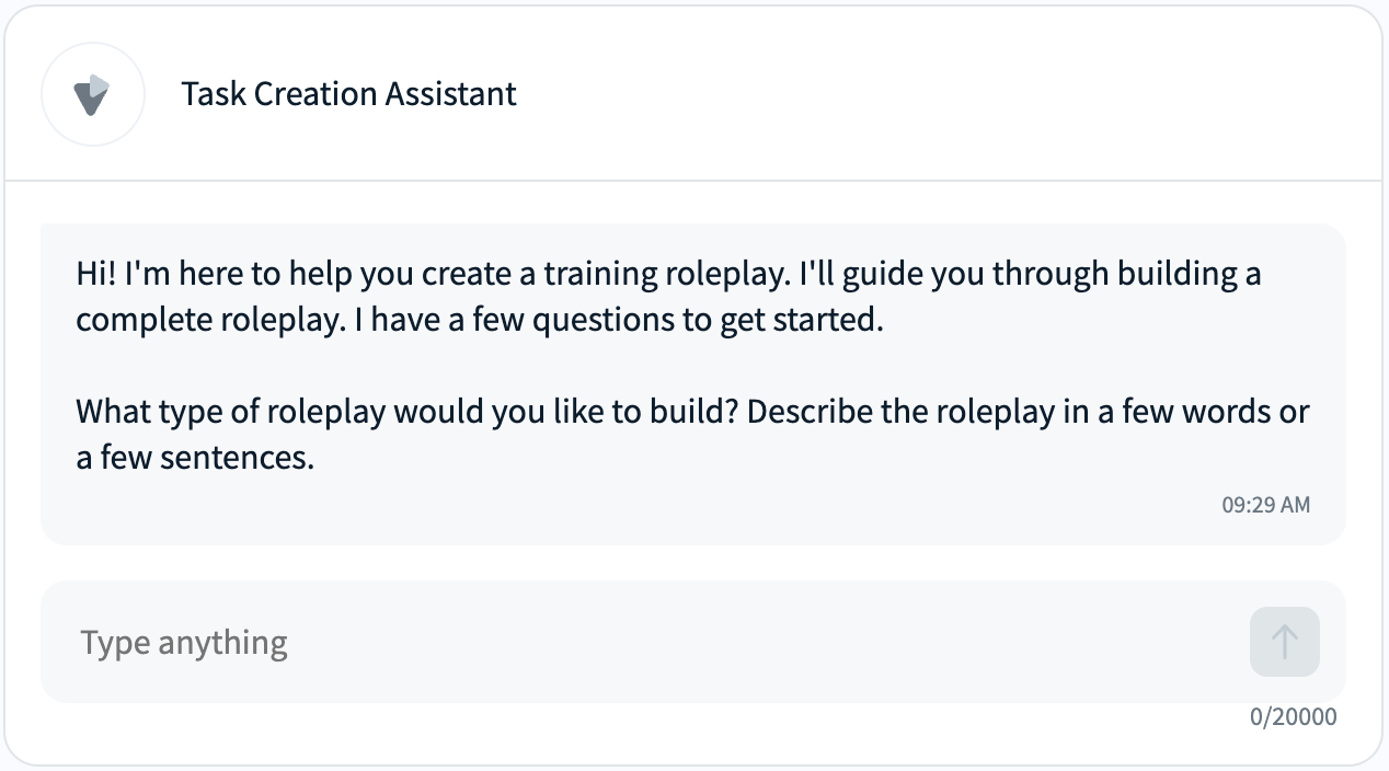 * Easily create role play simulations in minutes by typing a few prompts and/or uploading training materials.